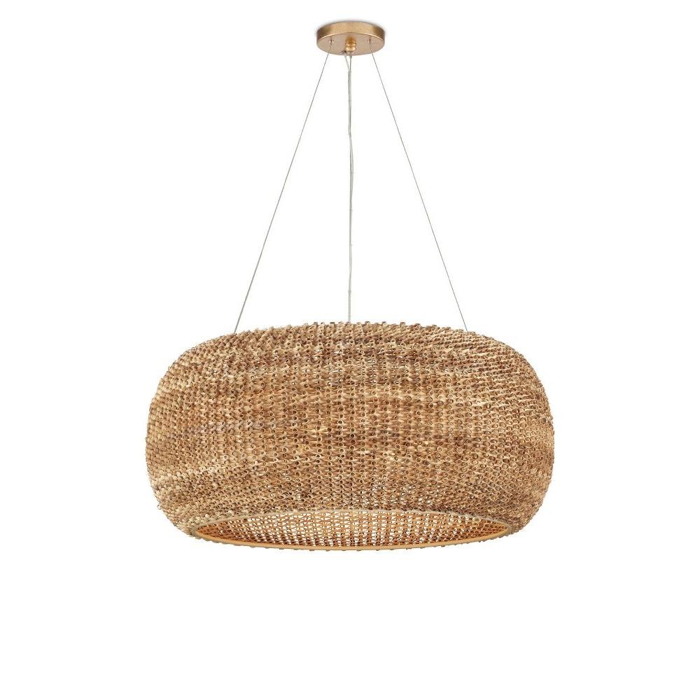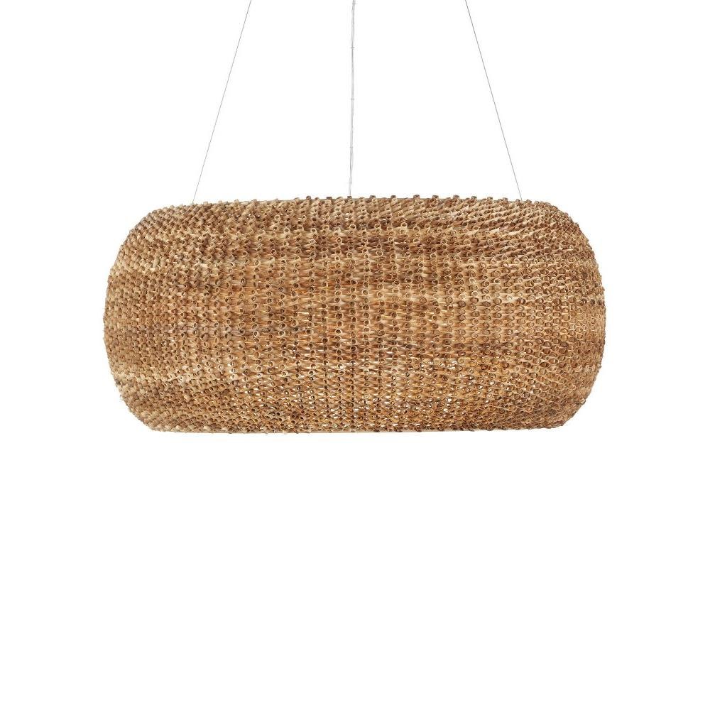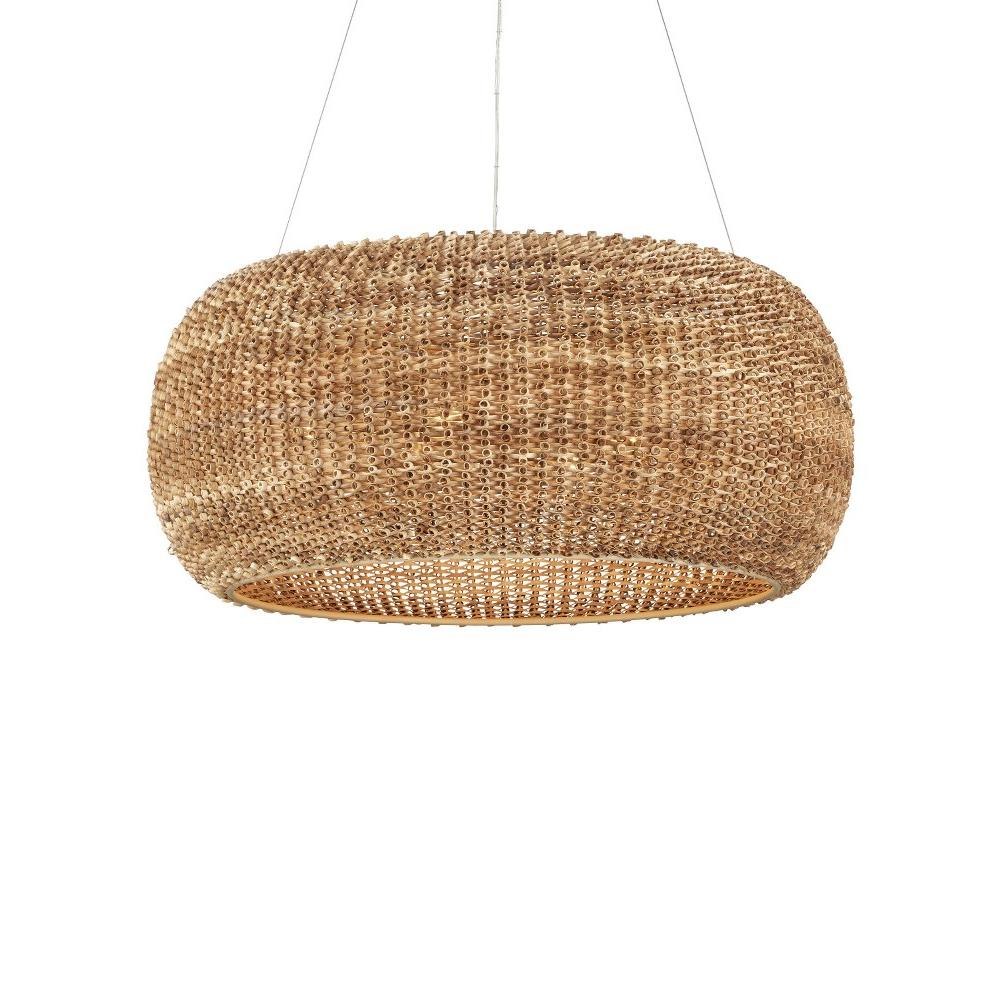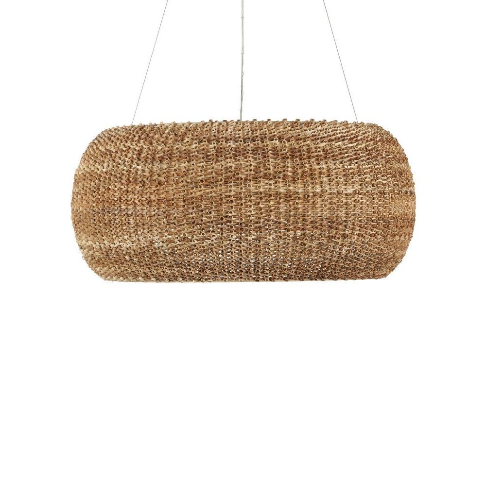 Made from a process that is similar to quilling with paper, the Boucle Chandelier is fashioned from looping natural rattan that has textural curls on the edges. This is a complex weave that is incredibly time-consuming to achieve with the level of consistency that creates a seamless shade. Wrapped around a wrought iron frame in a beige finish, the rattan chandelier will bring great warmth to a space. Adjustable from 36" to 158" with use of included chain/rod kit/cable. If your space calls for a longer drop, additional chain/rods/cable is available for purchase.