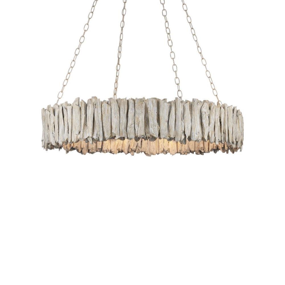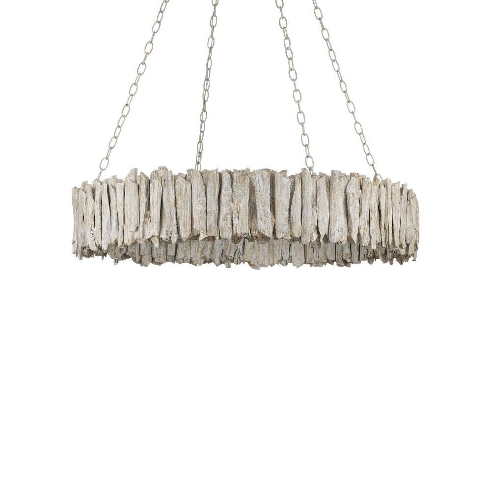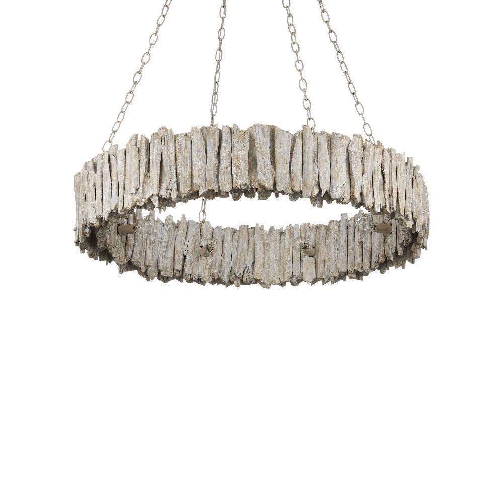 The Driftwood Whitewash Ring Chandelier is crafted from hand-selected pieces of natural driftwood. The wrought iron frame and the wood pieces are in a whitewashed driftwood finish that makes this a seamless tone-on-tone composition. The Driftwood is a perfect choice for any home with a coastal or lakeside aesthetic. Adjustable from 24" to 82" with use of included chain/rod kit/cable. If your space calls for a longer drop, additional chain/rods/cable is available for purchase.