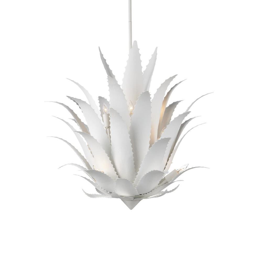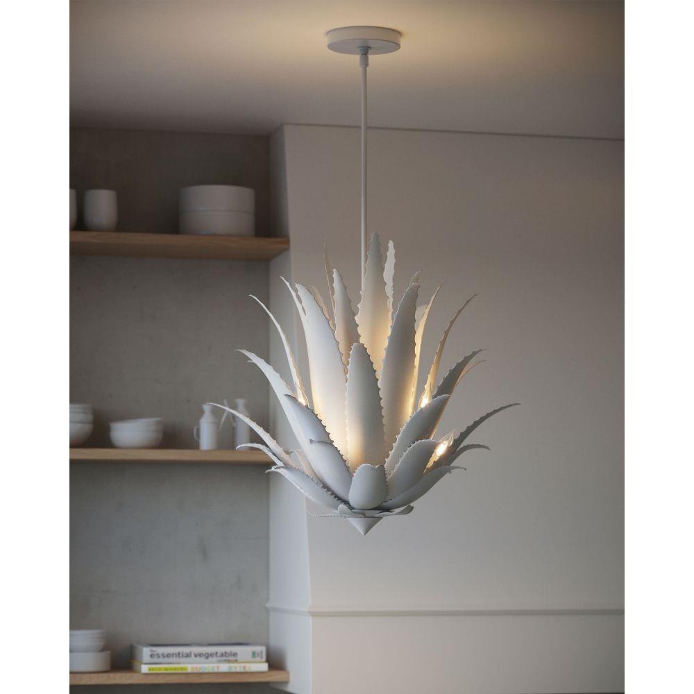 The Agave White Chandelier was inspired by the flourishing plant of the same name, whose spiky, leathery fronds curl up from the ground. This sense of movement has been captured in the flowing spikes on this white chandelier. “My love of the Agave plant, of which hundreds of varieties flourish in the peninsula, has inspired me for many years,” says the fixture’s designer Marjorie Skouras. Her passion for the Yucatan shines through in this wrought iron creation covered in a crisp gesso white finish. Adjustable from 31" to 73" with use of included chain/rod kit/cable. If your space calls for a longer drop, additional chain/rods/cable is available for purchase.