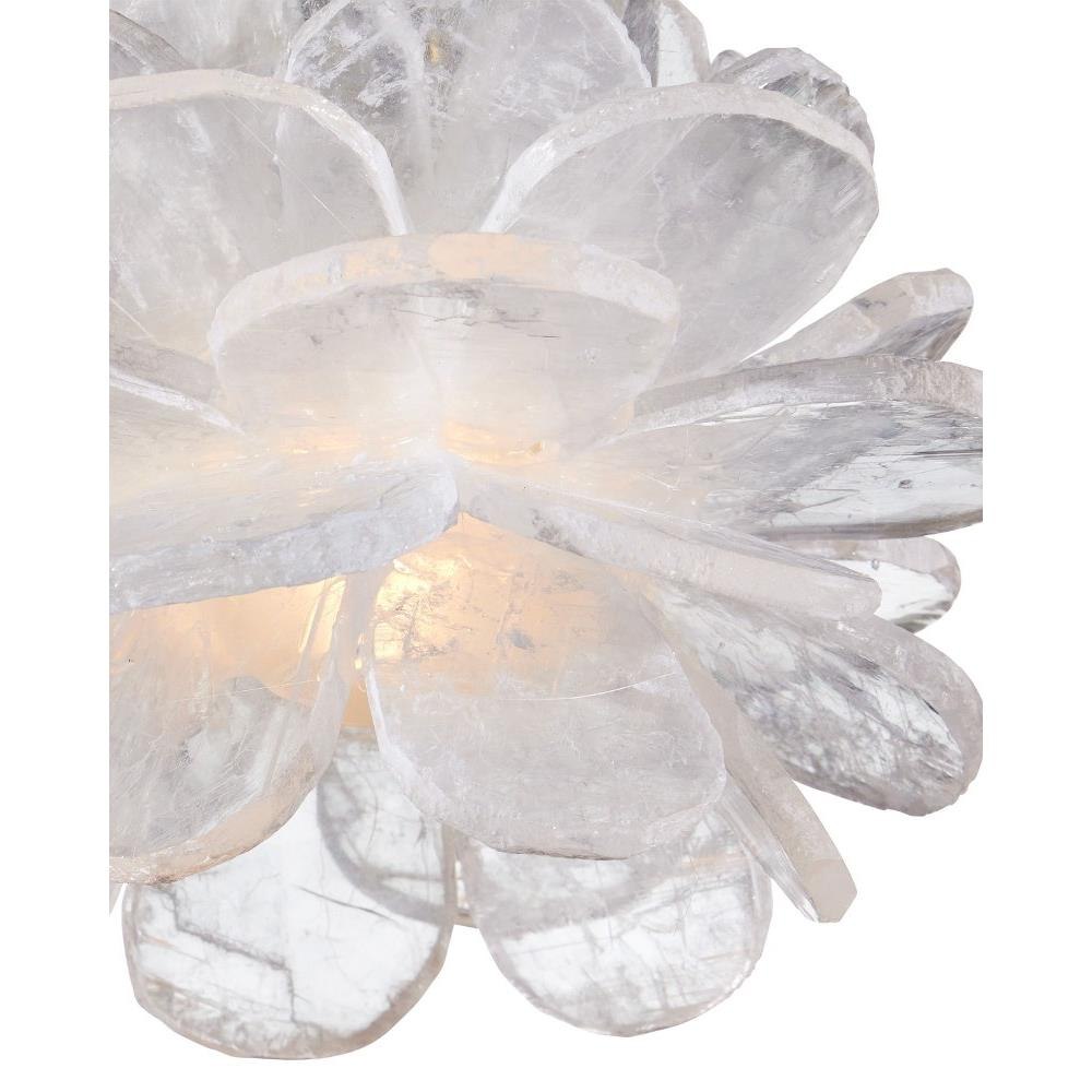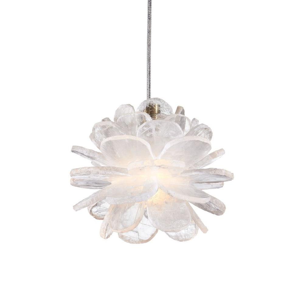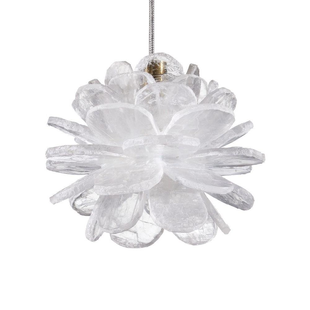 The petite Clarity Pendant looks like a flower with each of its petals made of natural Selenite. The crystal is very reflective so it creates a nice glow when illumination strikes it. The white pendant takes on another aspect of this natural material, as the textural quality of the crystal creates a more dynamic profile. It hangs from a slender cord to keep the design simple. Adjustable from 12" to 125" with use of included chain/rod kit/cable. If your space calls for a longer drop, additional chain/rods/cable is available for purchase.