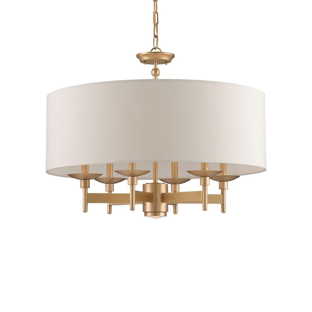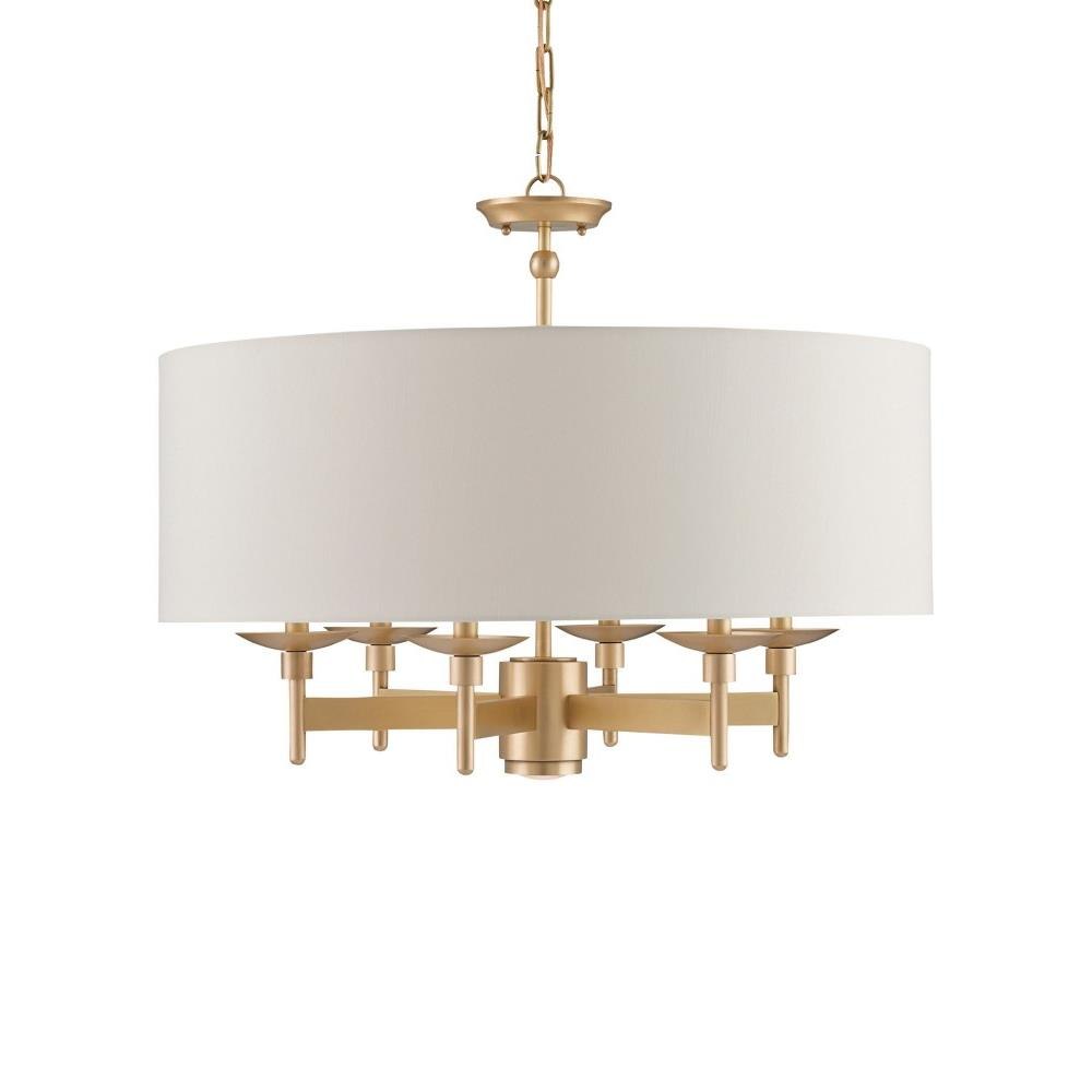 Light glows softly from behind a generously proportioned shade that encircles the Bering Nickel Chandelier. It is suspended around a metal frame in a polished nickel finish. The lines of the silver chandelier are minimal but expressive with its thin stems lifting the bobeches. The Bering is also available in a brass finish.