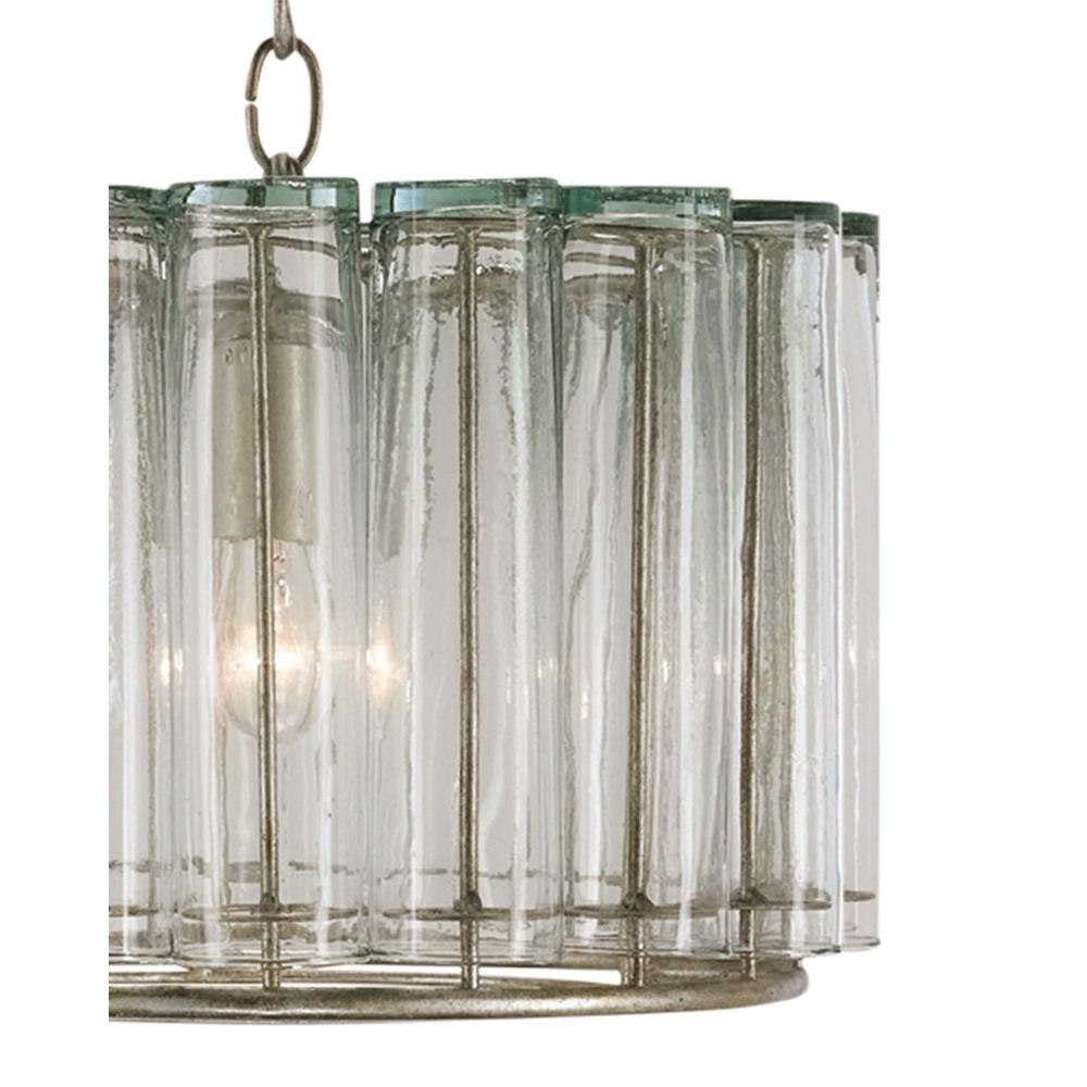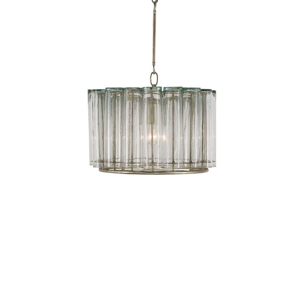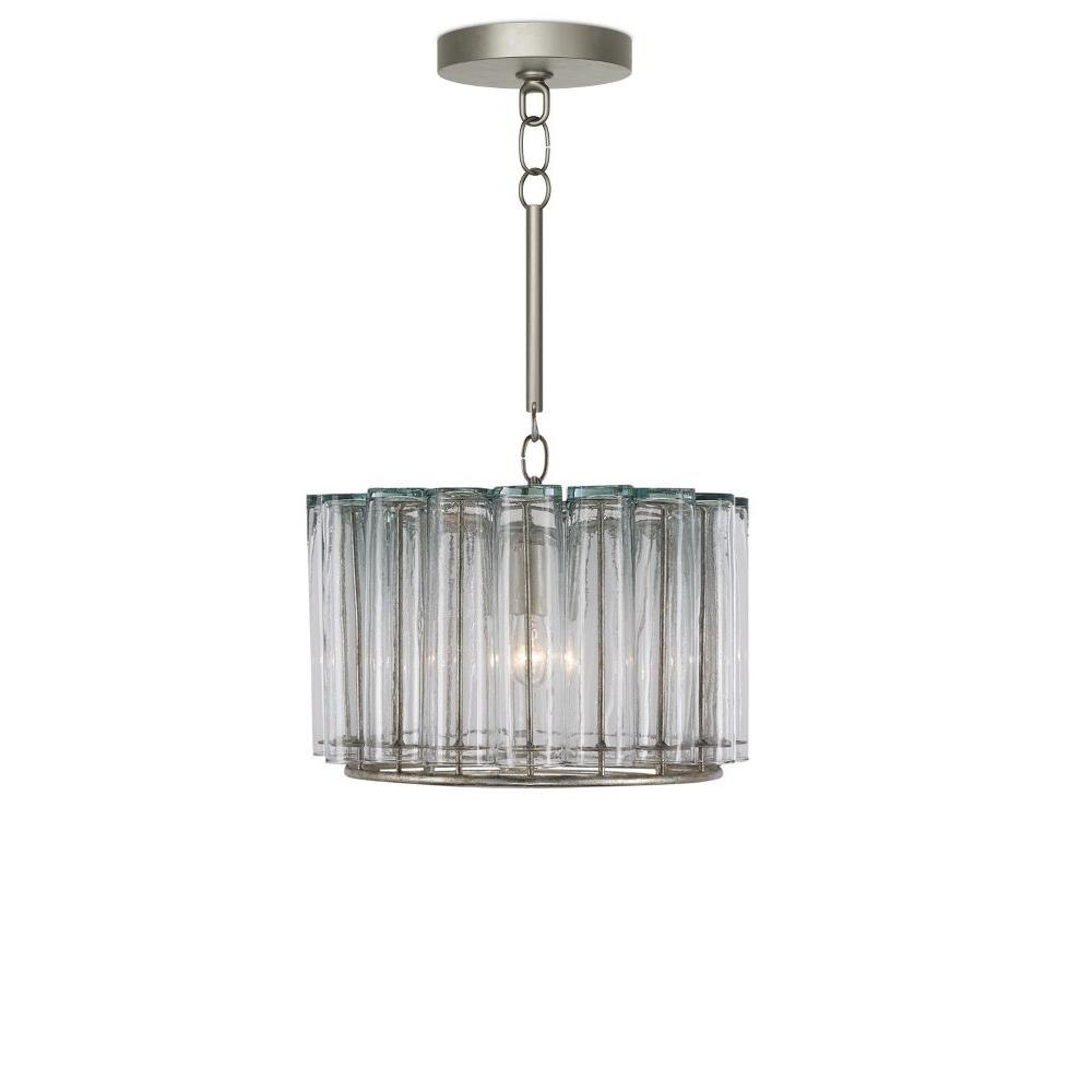 The Bevilacqua Pendant has reflective glass flutes made from recycled bud vases for a shade. Its wrought iron frame is finished in an exquisite silver leaf that compliments the hues in the recycled glass. This silver pendant is one in a variety of fixtures in the Bevilacqua collection.