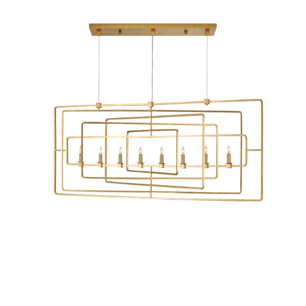 Paris International Style was all the rage in the 1930s, and our contemporary new twist on it is the Metro Silver Rectangular Chandelier in a gleaming contemporary silver leaf finish. The elongated linear shape and the interlocking rectangles of wrought iron that form the frame of this silver chandelier is a nod to early modernism. We offer the Metro in a number of other variations.