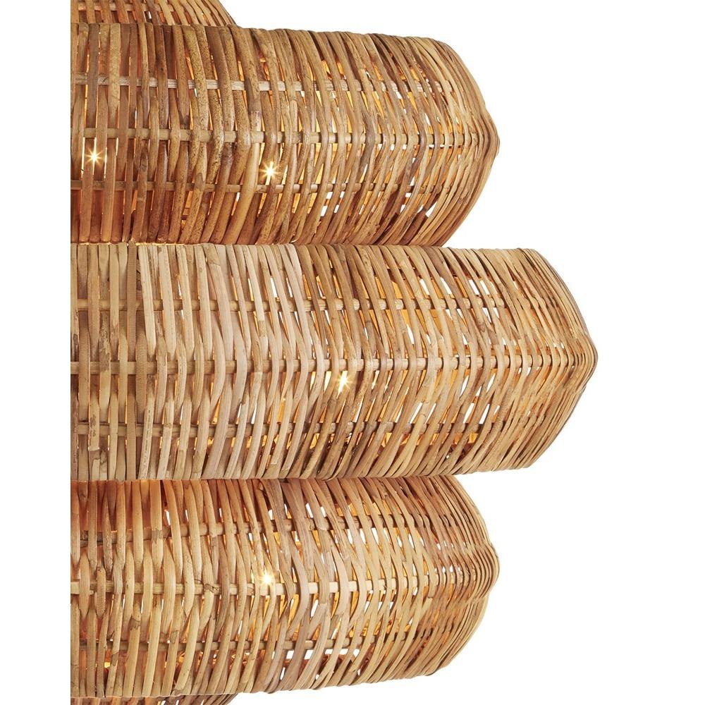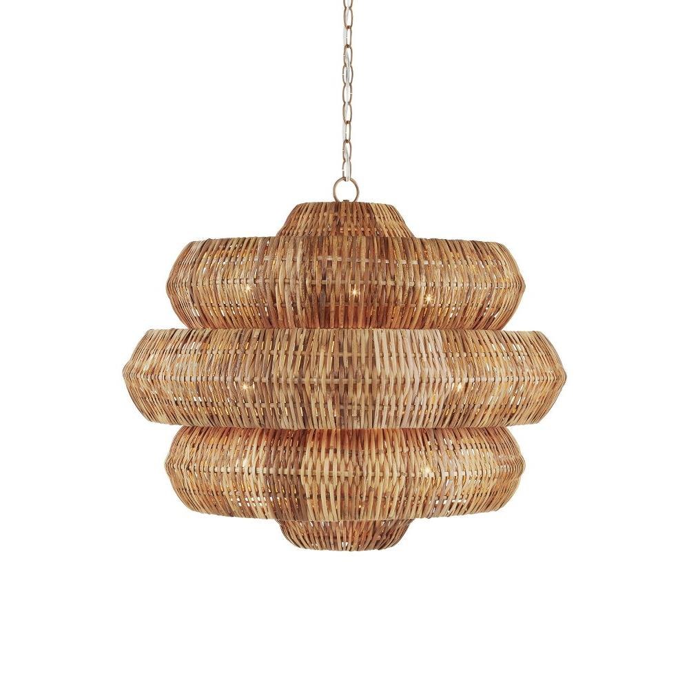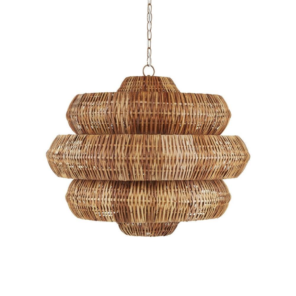 Painstakingly woven by artisans who use traditional techniques, the Antibes Chandelier is a marriage of artistry and high-quality construction. Natural rattan forms the body of this geometric chandelier supported by a wrought iron frame in a khaki finish. This rattan chandelier is one of several fixtures in the Antibes family.