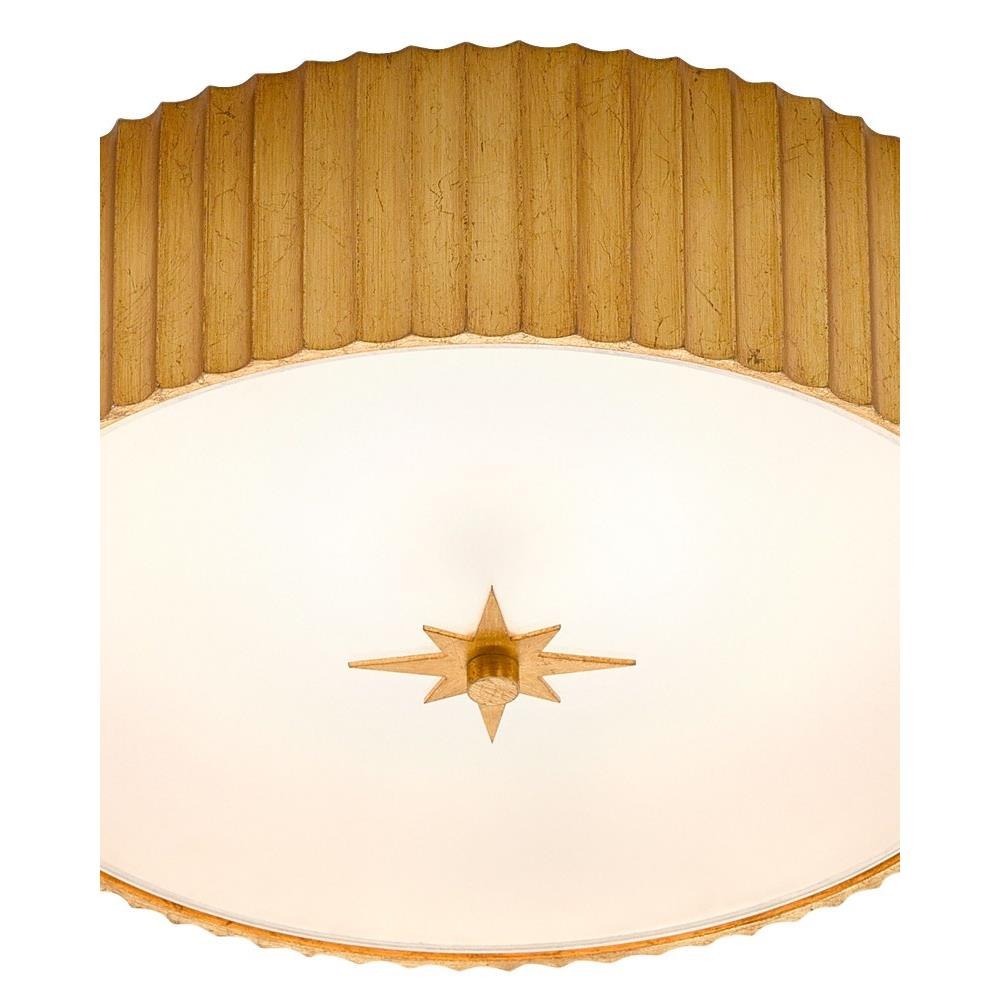 The Caravel Flush Mount is a classic flush-mount design made of composite with a gold leaf finish. Weve fitted the Caravel with a frosted glass diffuser, which will soften the light wafting from within it.