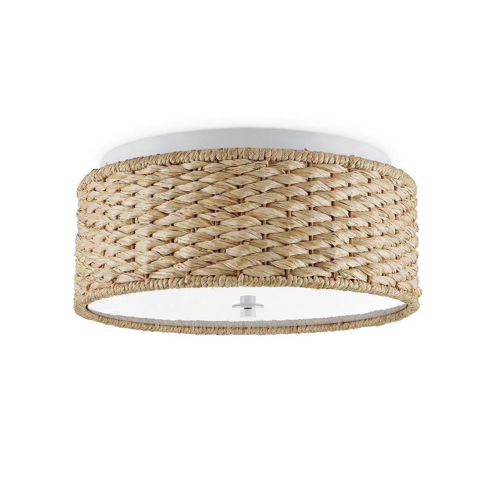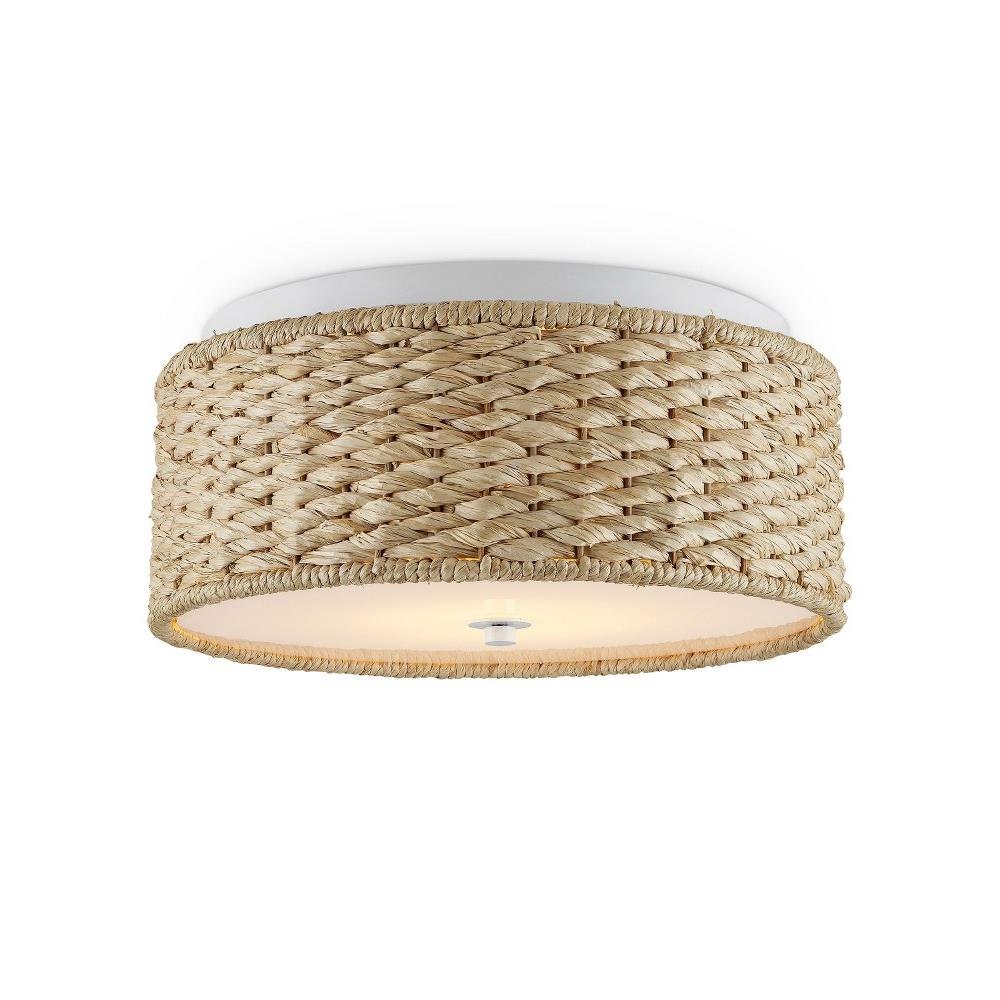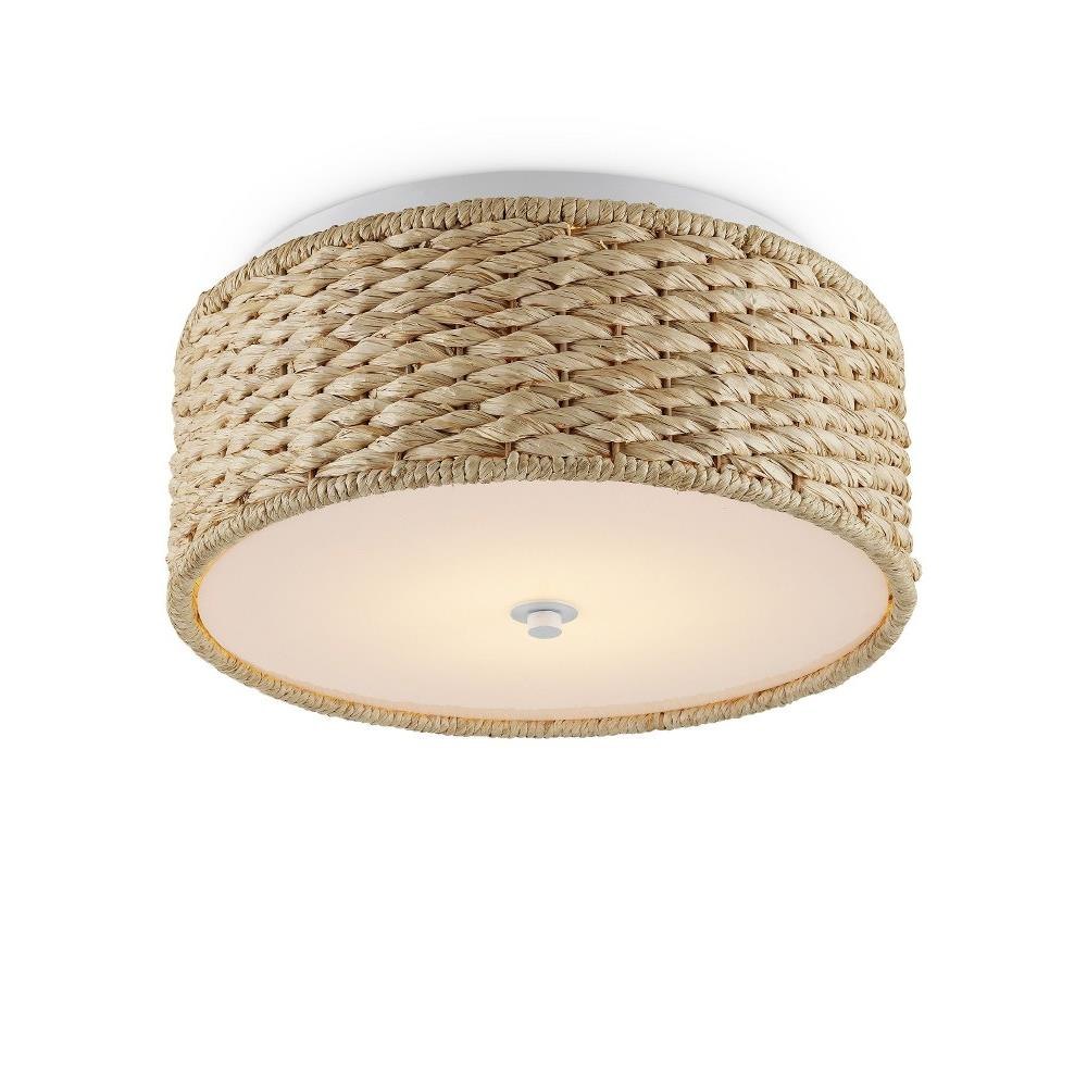 Raffia is densely woven around the circumference of the Colchester Flush Mount. Clarence Mallari designed the rope flush mount to be luminous. Choices that enhance the glow include the sugar white finish, the acrylic diffuser, the way the light flows onto the ceiling, and the weave that allows the light to seep through.