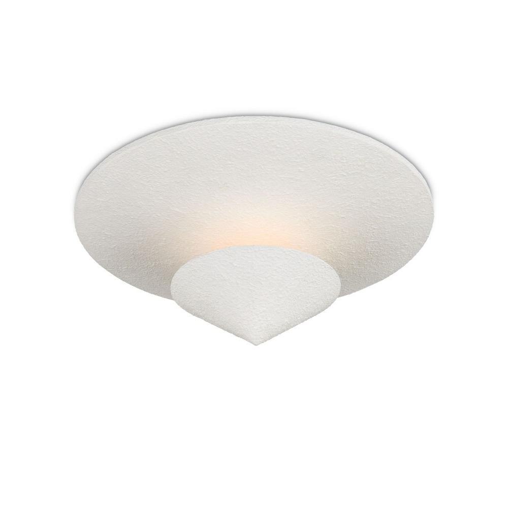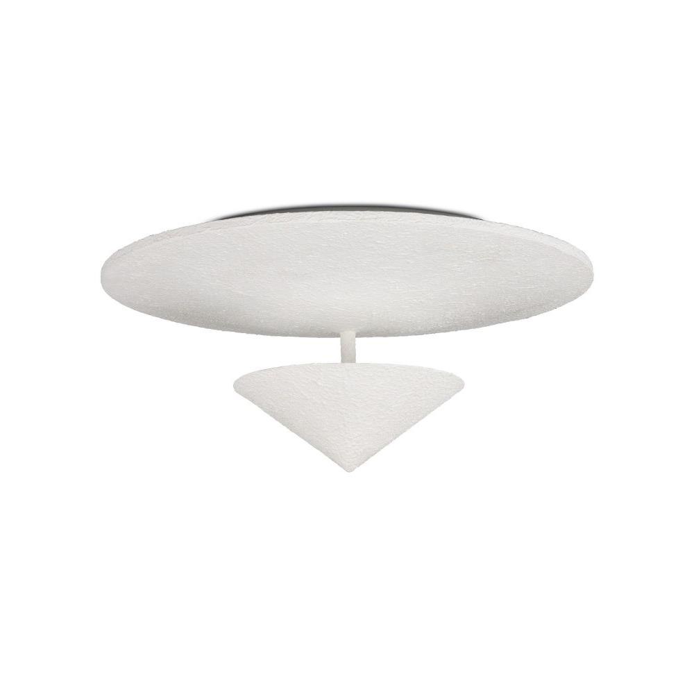 Playing with a geometrical shape that creates up-light, the Empyrean Flush Mount was designed with clean lines, making it as contemporary as designs come. The cone shape of the bottom feature is a design detail that brings added interest to the profile of this white flush mount. The wrought iron fixture is covered in a yeso blanco finish to add a subtle texture to the decidedly modern flush mount.
