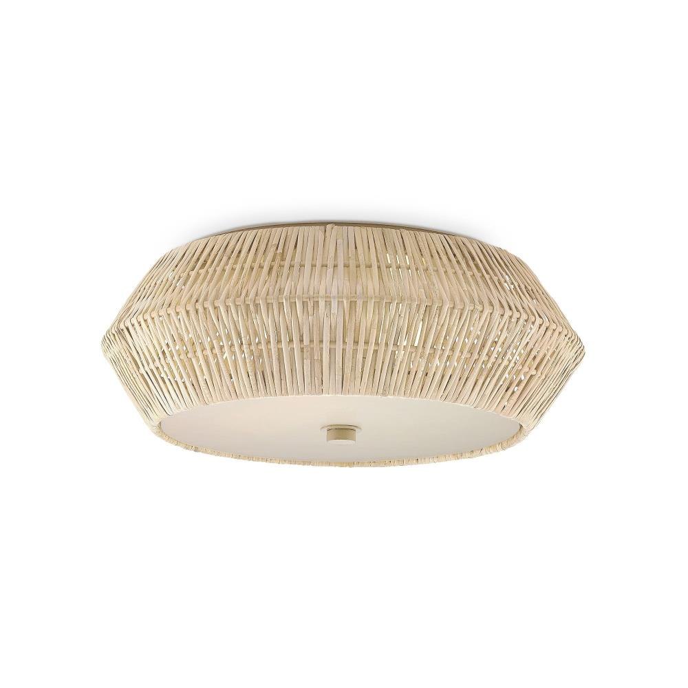 The Antibes White Flush Mount is crafted from natural bleached rattan that flows along the exterior of the fixture, the interior wrought iron frame finished in snow white to complement the pale natural material. The two lights are filtered by an acrylic diffuser to make it idea for small spaces.