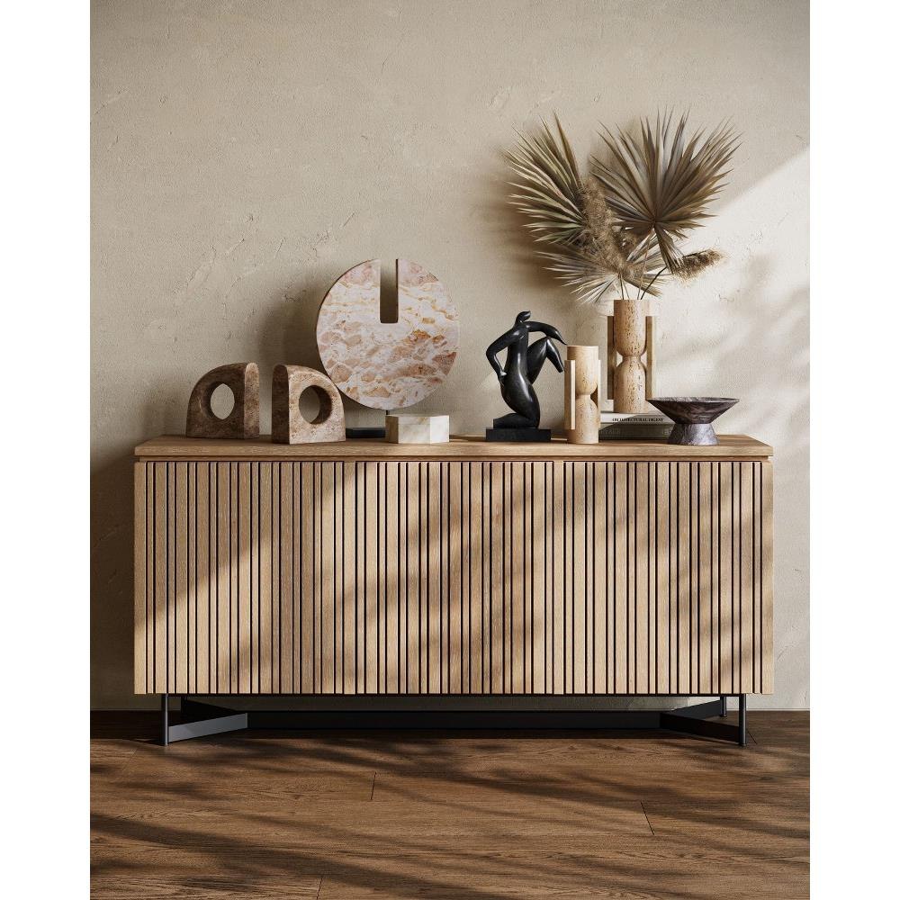 The Anu Marble Disc is a textural marvel. The pitting and mottling of the natural stone make the tan sculpture feel like a fossilized artifact, while the simplicity of the black metal base furthers the feel that this stone disc is museum-worthy. Because the personality of each slice of stone varies, each of these decorative accessories will be unique.