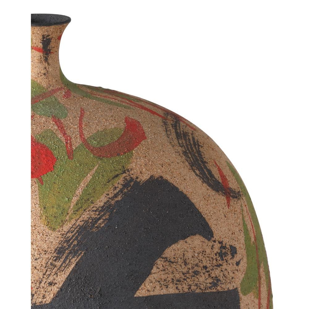 Bring a bold artistic statement into a room with the Zeal Multi-Colored Vase, which is crafted from porcelain with a textured tan surface and an artfully applied pattern in black, green, and red. Each vase is uniquely detailed, showcasing expressive brushwork and color placement that make no two exactly alike. The combination of texture and bold color gives this piece a modern, gallery-worthy presence.