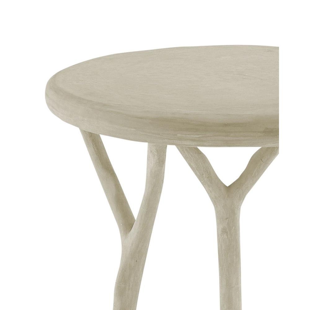 The Hidcote Small Accent Table is made from the traditional technique of faux bois perfected by the French, which involves hand-applying concrete over a metal frame. This concrete accent table in a warm faux bois natural finish can be placed indoors or out.