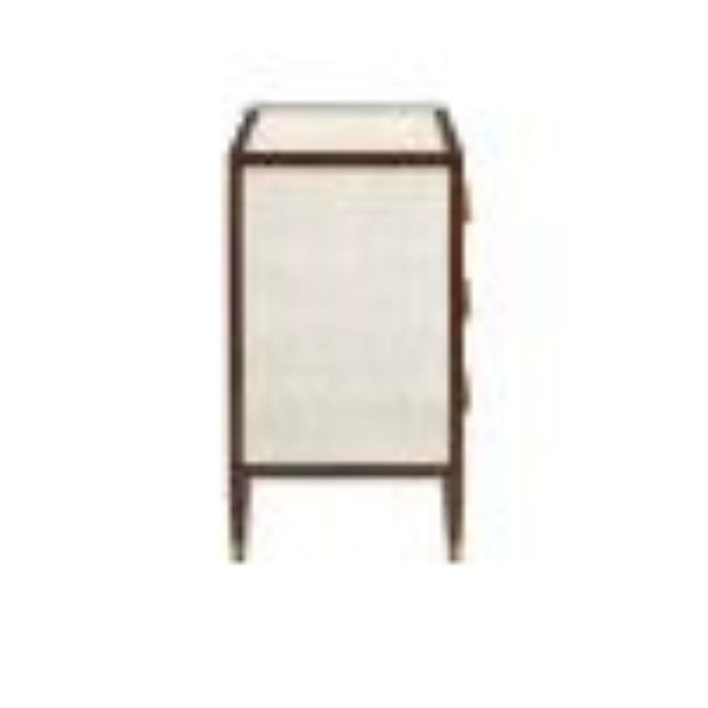 The Evie Shagreen Chest is made of mahogany in a dark walnut finish. The wood-framed panels and drawers covered in ivory faux shagreen are accented with brass door pulls. This ivory chest was inspired by vintage shagreen furniture from the 1920s. We have a number of offerings in this family of furnishings. Soft Close Drawer Slides, Removable Drawer Liners, Adjustable Glides, Anti Tip Kit.