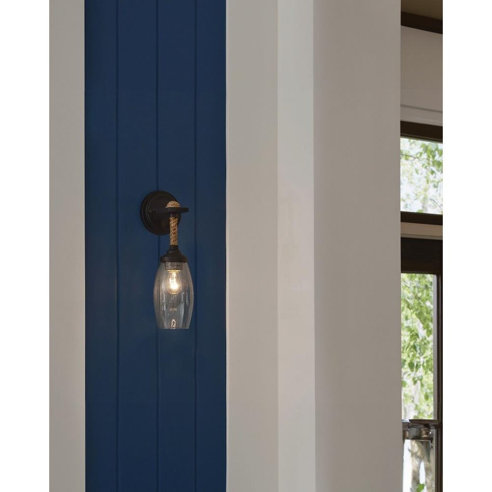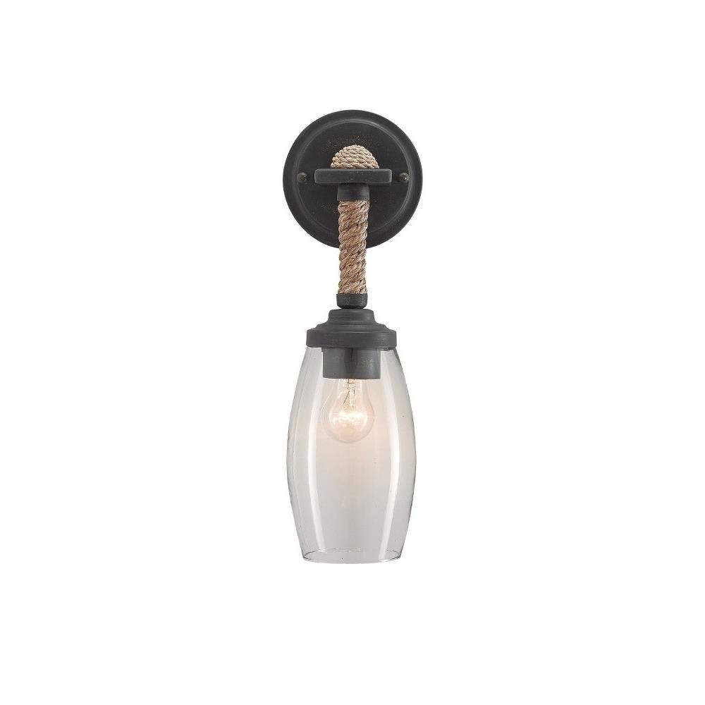 The perfect combination of natural and industrial materials, the Hightider Wall Sconce has a recycled glass shade and a wrought iron frame in a French black finish. The Abac+í rope that is wrapped around the neck of the nautical sconce brings it a hint of texture.