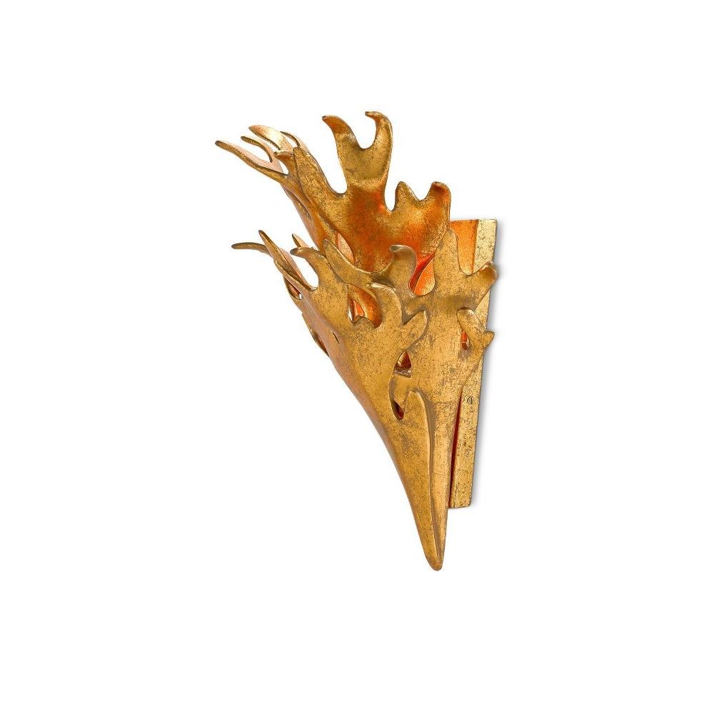 The Formby Wall Sconce has a flourishing shape that calls to mind leaping flames or a leghorn fern. The cast aluminum sconce in a gold leaf finish was designed by Marjorie Skouras, who has a talent for rendering nature beautifully. The gold sconce is certified for damp locations.