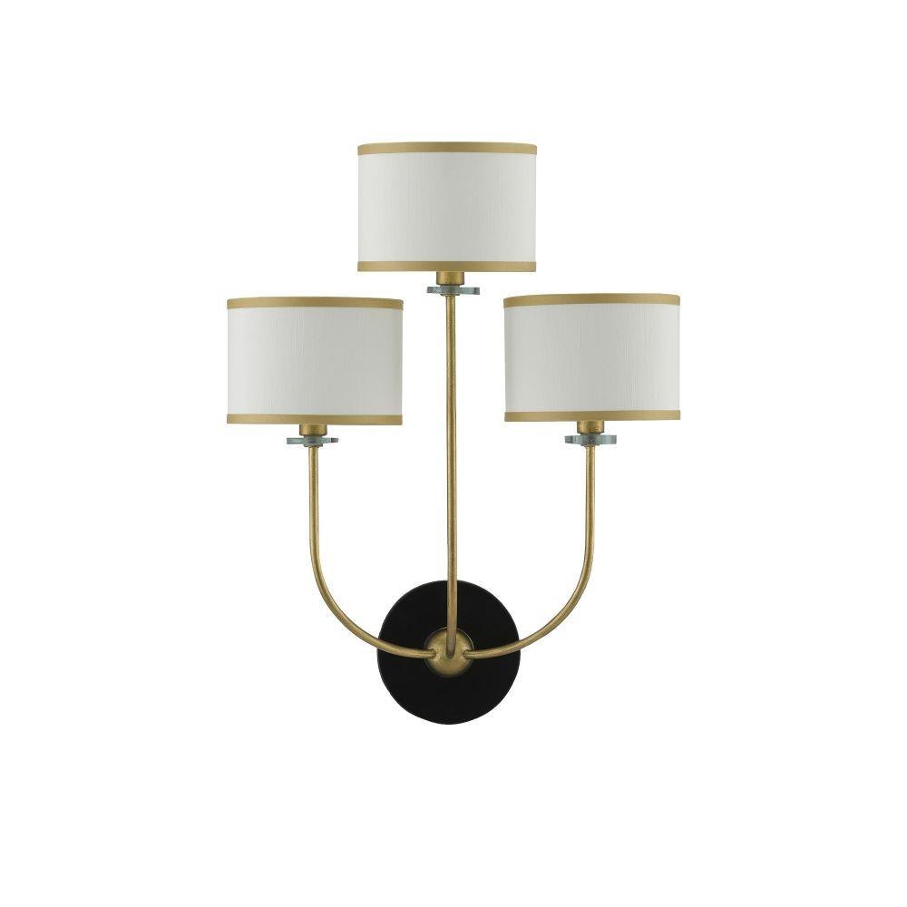 Clarence Mallari designed the Croydon Wall Sconce, which he describes as an uncomplicated piece, even though the inspiration behind the gold wall sconce has a complex story. "Believe it or not, this wall sconce was inspired by the waterlily," he explains. "The stems of the flower in nature, which are not visible above water, serve as the arms and the shades are in the shape of the flowers. The fabric on the shades is the color of the flower and the bobeches are the color of water." The Croydon is made of wrought iron in brass and satin black finishes.