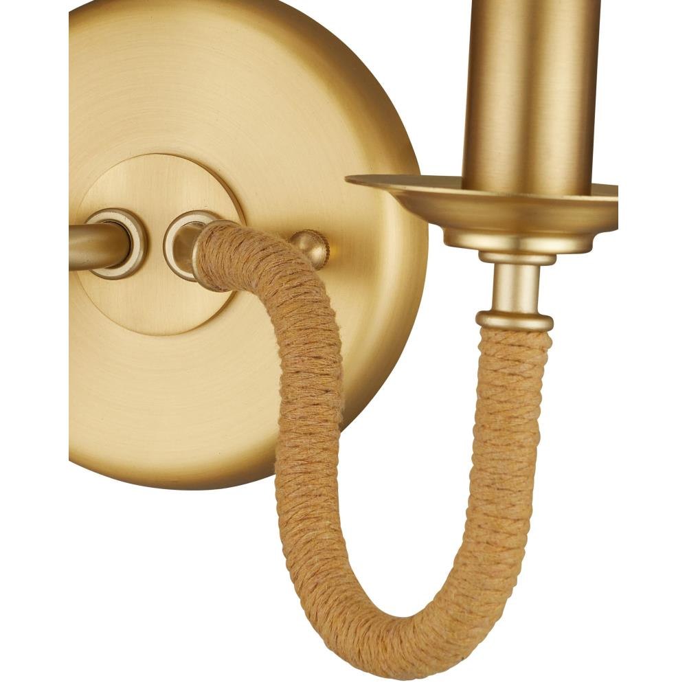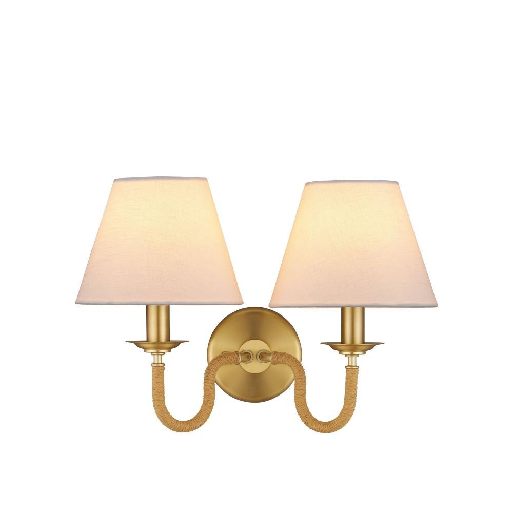 The Adala Brass Wall Sconce brings a refined, traditional look to a room. Its metal frame is finished in brushed brass for a warm, understated luster. Two gracefully curved arms, wrapped in natural rope, add texture to the piece. Off-white linen shades sit atop each arm, casting a soft, diffused light. Designed to complement both classic and transitional interiors, the Adala sconce introduces character and charm.