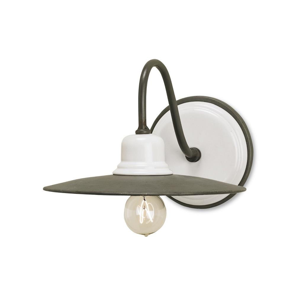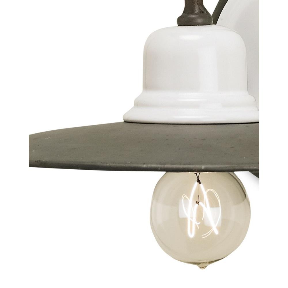 Inspired by early American farmhouse style, the Eastleigh Wall Sconce is made of white ceramic and wrought iron in a Hiroshi gray finish. The material choices and the studied way the colors are integrated provide the gray and white sconce with a timeless appeal.