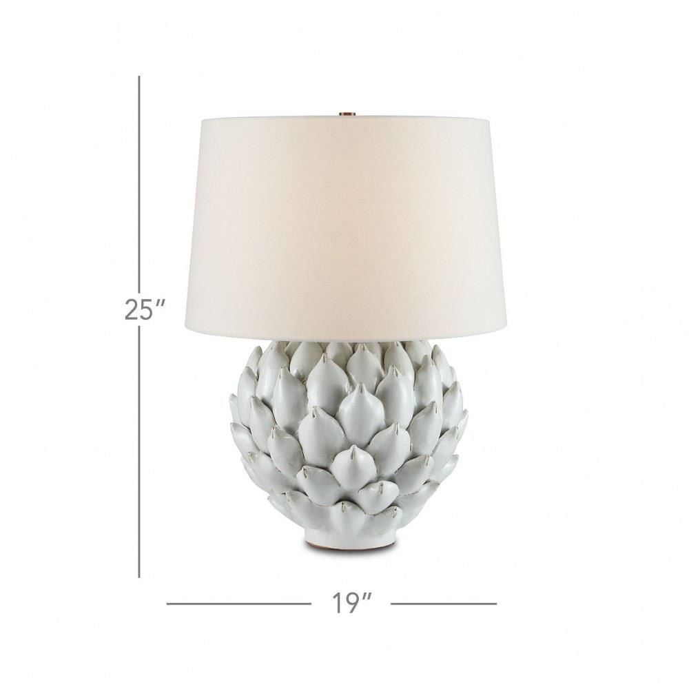 Made by a group of elderly women who live at the border of Burma and Thailand, the Cynara Table Lamp is a lovely oversized white lamp shaped like an artichoke. Each leaf, or bract as they are called with the real plant, is made of ceramic and affixed by hand, the shaping a painstaking process in order to mimic the lamp's edible namesake. The body of the Cynara is then finished in a soft antique white.