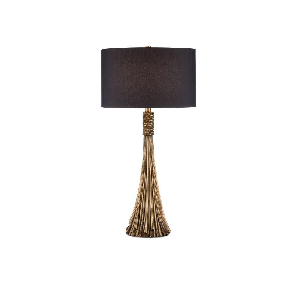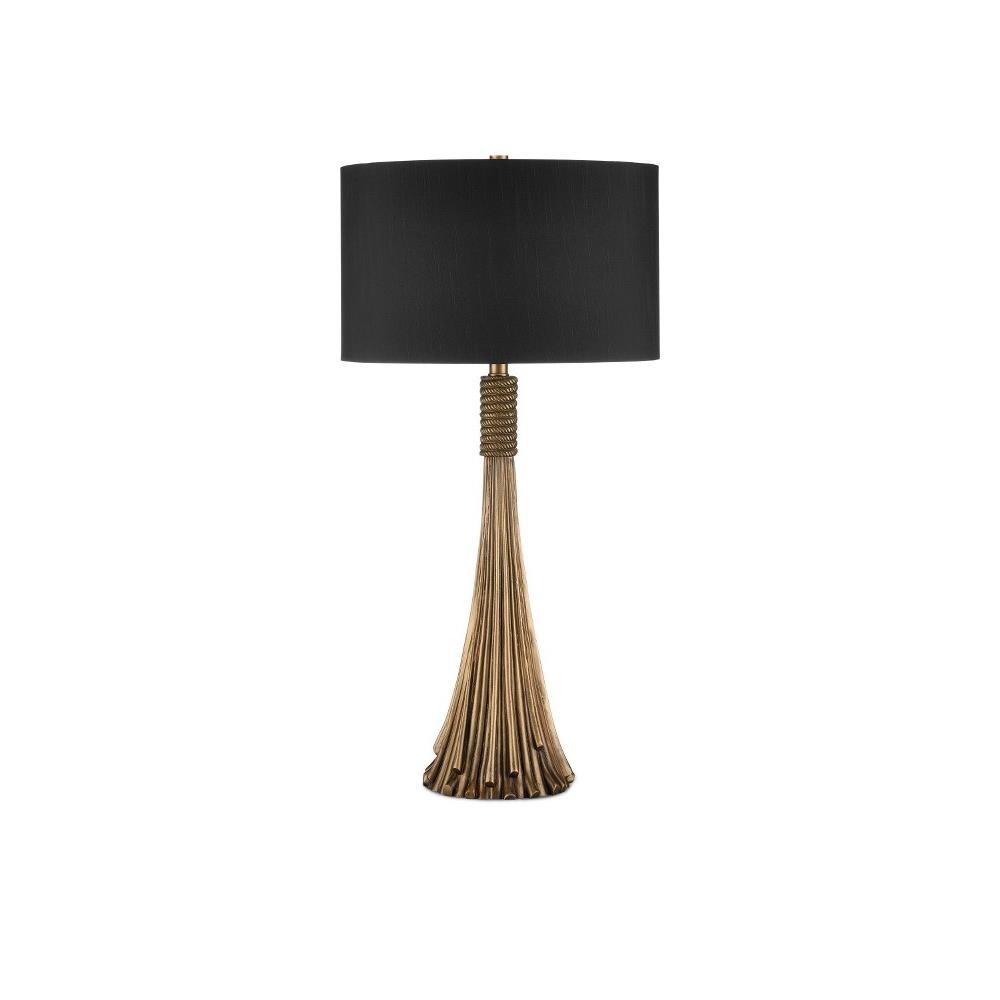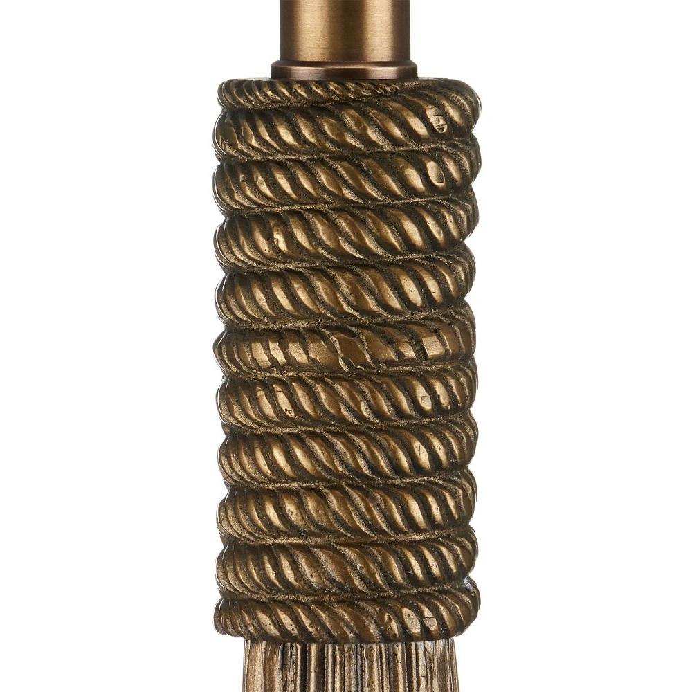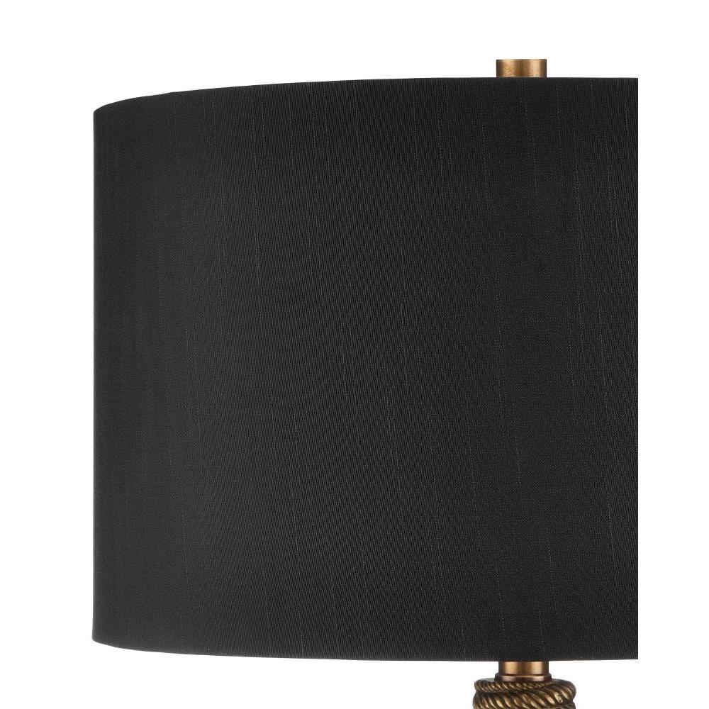 A beautiful representation of an interior ornamentation that rose to popularity during the early 17th century, the Baroque Table Lamp is shaped like a luxurious tassel. The convincing sense of movement it reflects is all the more impressive because it is made of aluminum. An antique brass finish and the black shade make their own statements within this luxe composition.