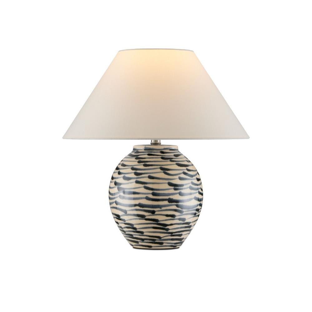 The Minnows Blue Table Lamp is swimming with personality, not merely from the streaking fish-like brush strokes on its ceramic surface, but from the crackle finish applied to the beige background beneath them. A flared empire shade adds to the Asian feel of this design. Because this lamp is hand-painted, the patterning will vary from piece to piece.