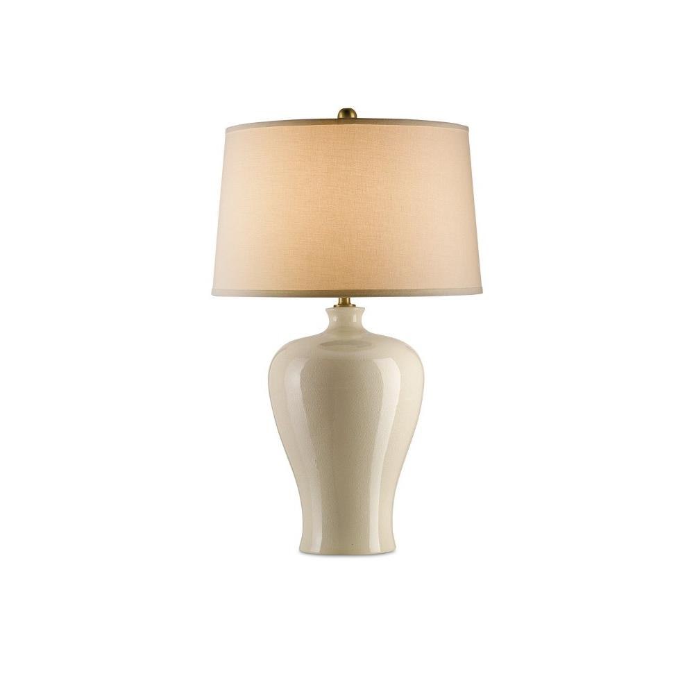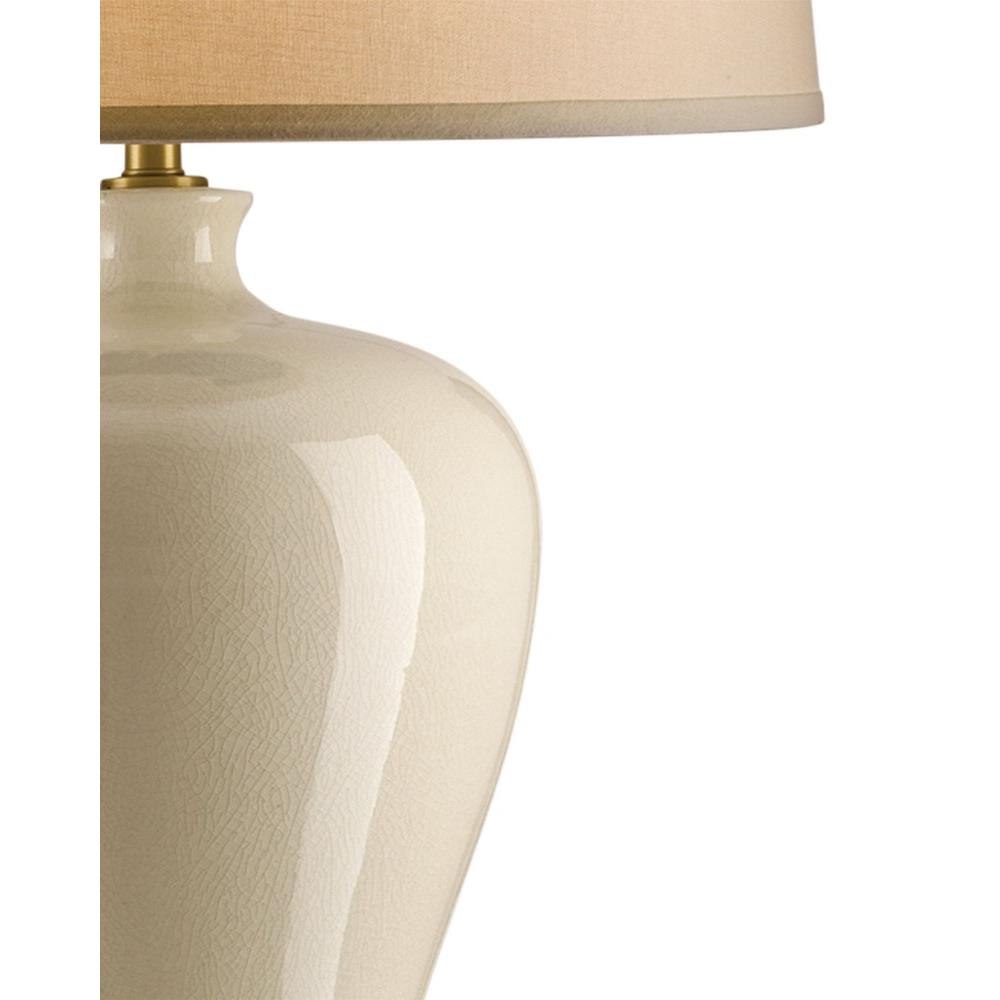 The Blaise Table Lamp has a slim, slightly fluted detail at the bottom of its traditional ginger-jar shape. Made of porcelain in a cream crackle finish, the ivory lamp is fitted with an off-white linen shade that directs light to its surface to create a serene glow.