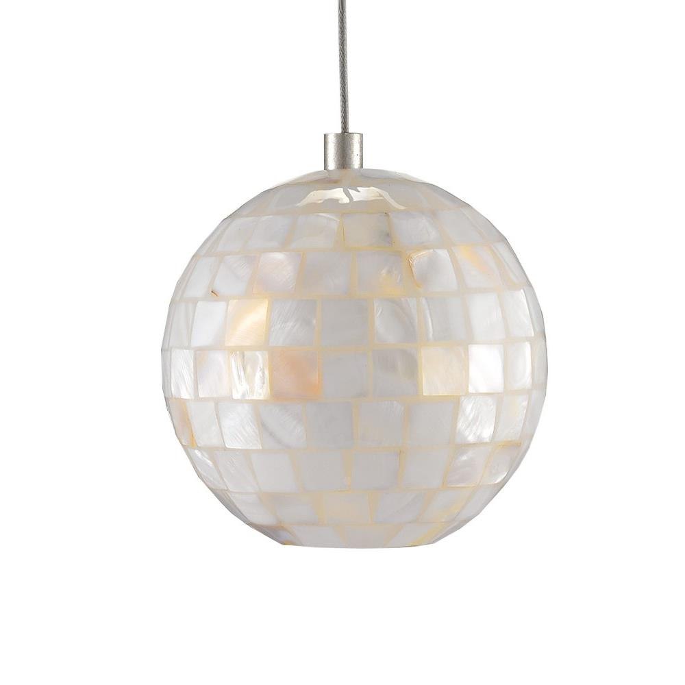 The Finhorn 3-Light Multi-Drop Pendant has orb-shaped shades covered with small squares of mother of pearl, painstakingly hand-applied. The stem and canopy of the white pendant light are in a painted silver finish to keep the composition light. This fixture is among Currey & Companys introduction of cluster lights, which includes 1-light up to 36-light configurations. We also offer the Finhorn in an orb pendant.