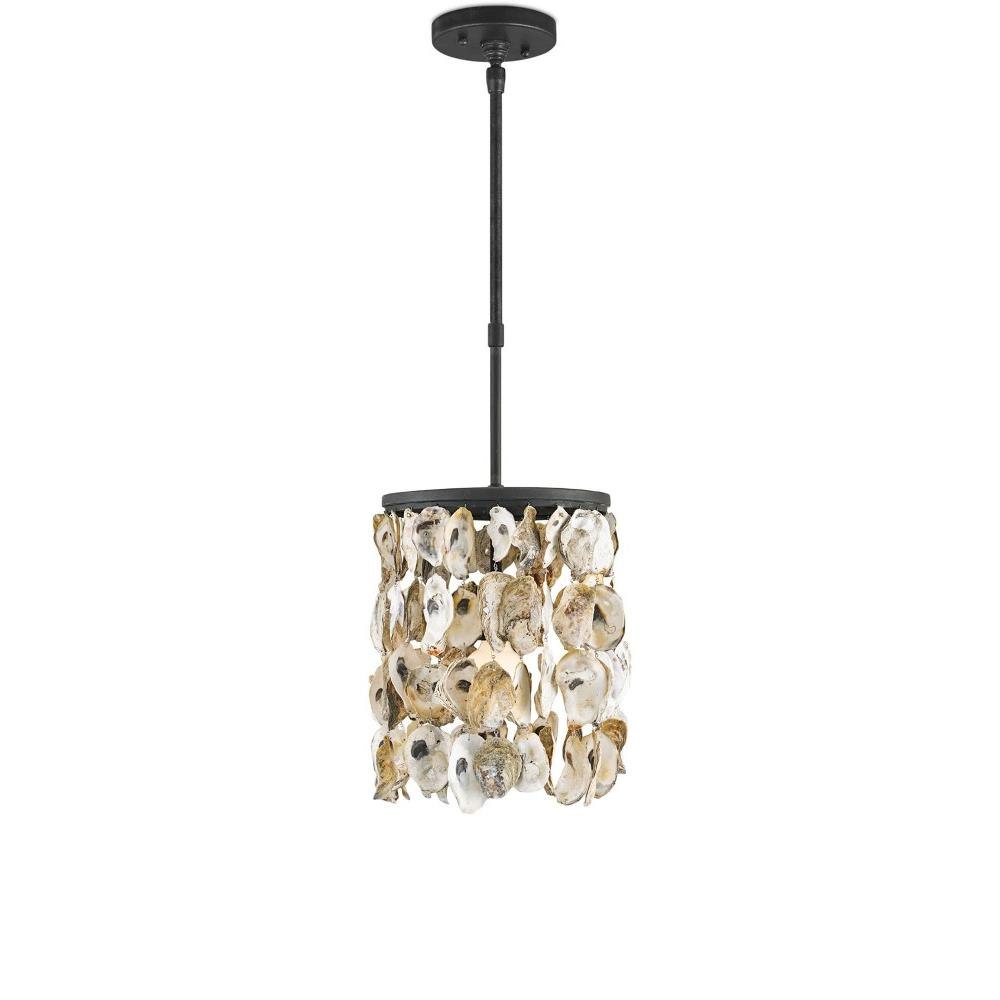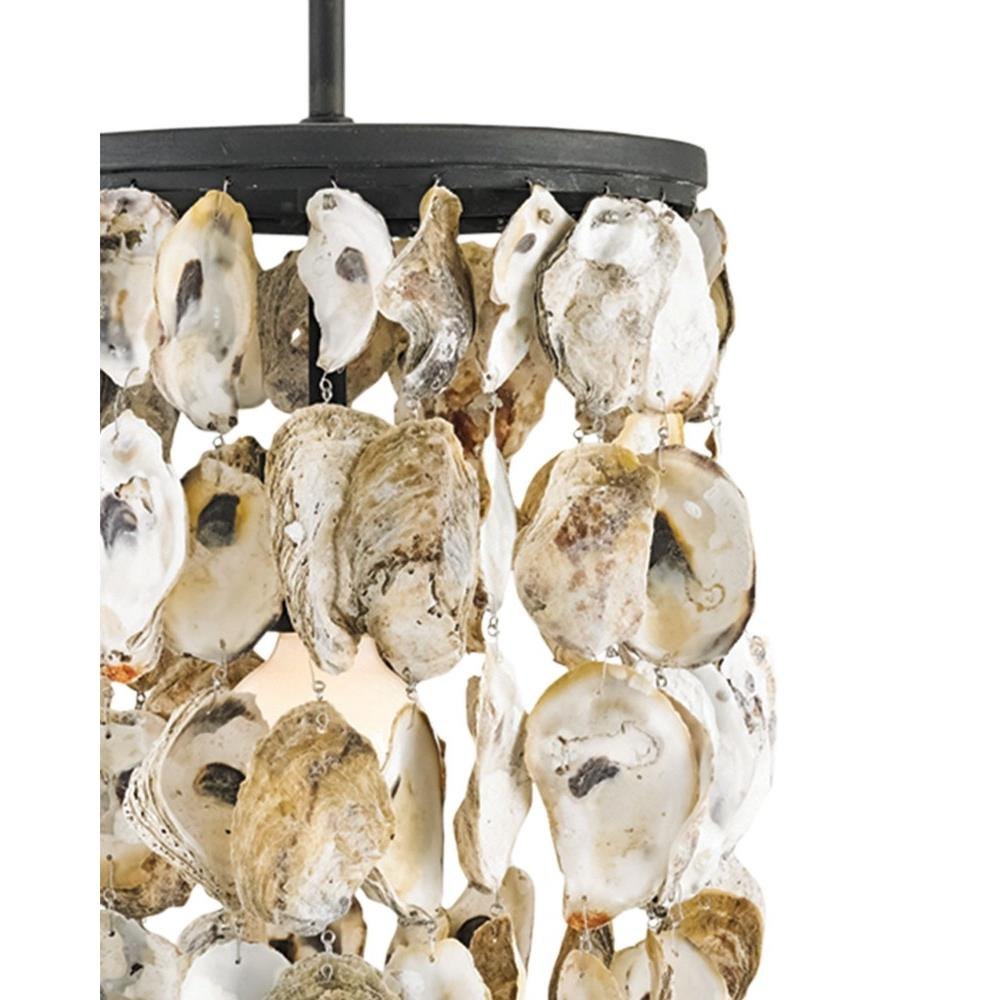 The Stillwater Pendant dangles strands of hand-selected oyster shells from a wrought iron frame in a blacksmith finish. This versatile shell pendant illustrates the artistry with which our design team approaches natural, nautical materials. We also offer the Stillwater in an oval chandelier.