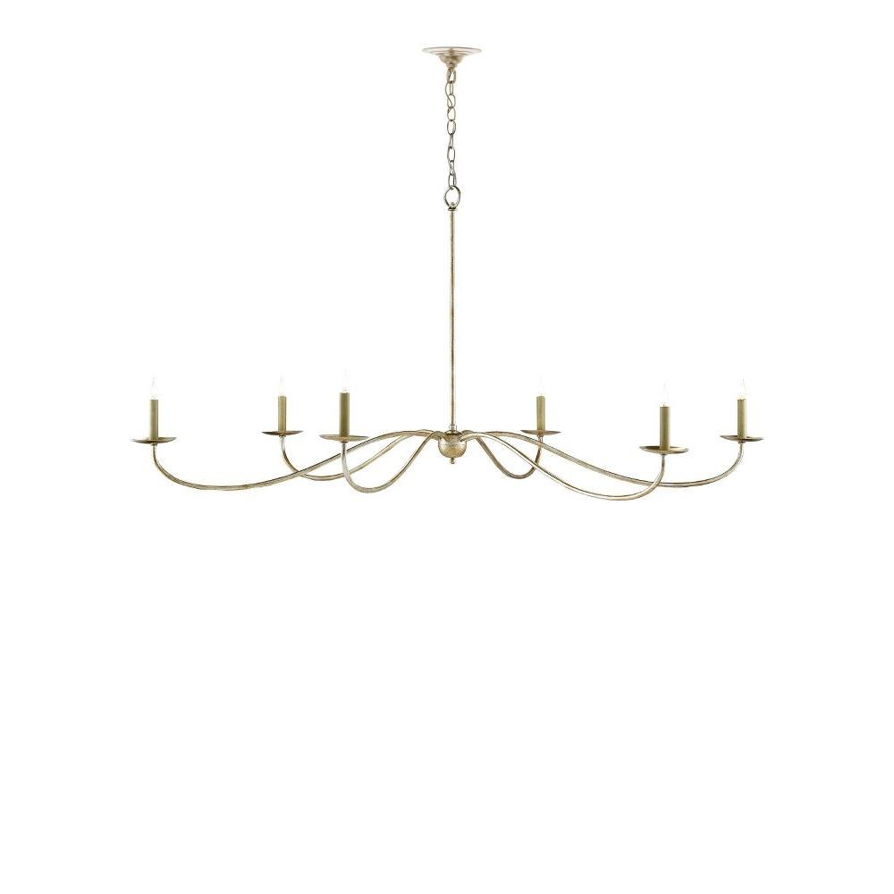 The Saxon Silver Chandelier is one of our monumental chandeliers that extends to an impressive 63-inches in diameter. Its shape and the silver Granello finish are nods to a bygone era but its slender lines that arc gracefully make its profile modern. We also offer this fixture in a Zanzibar finish.