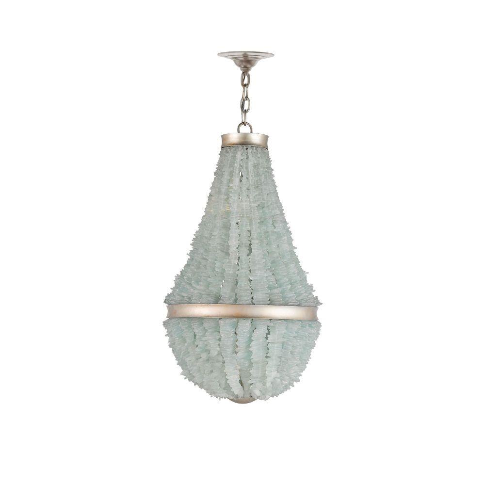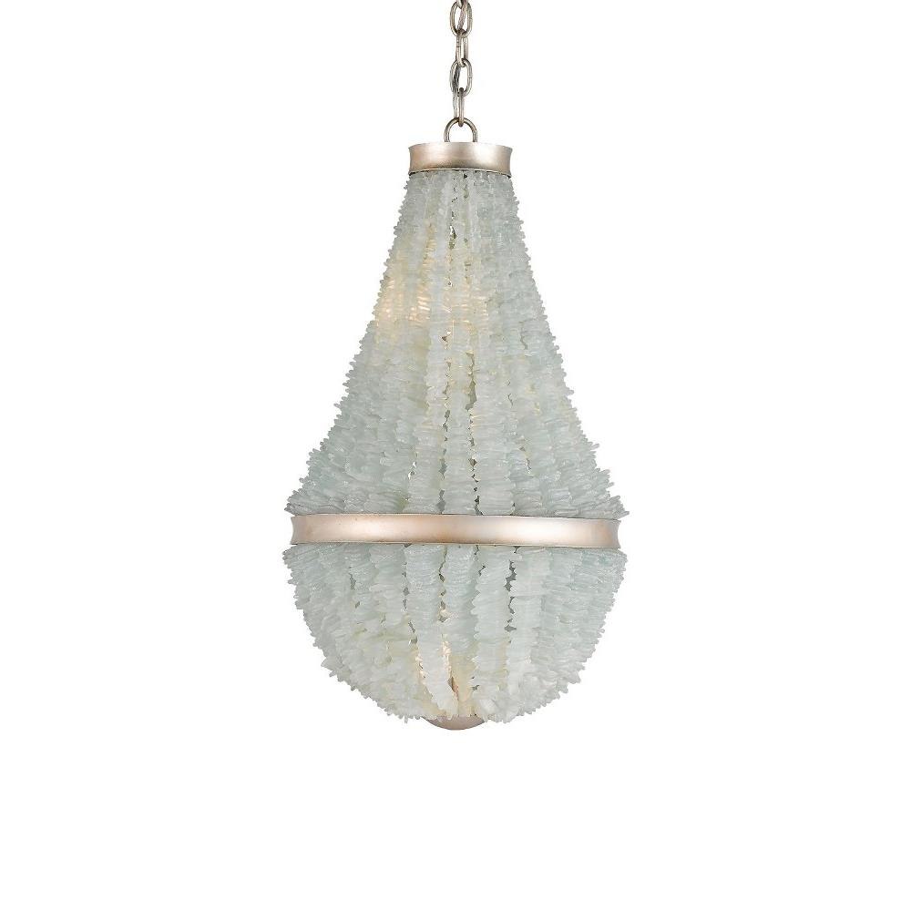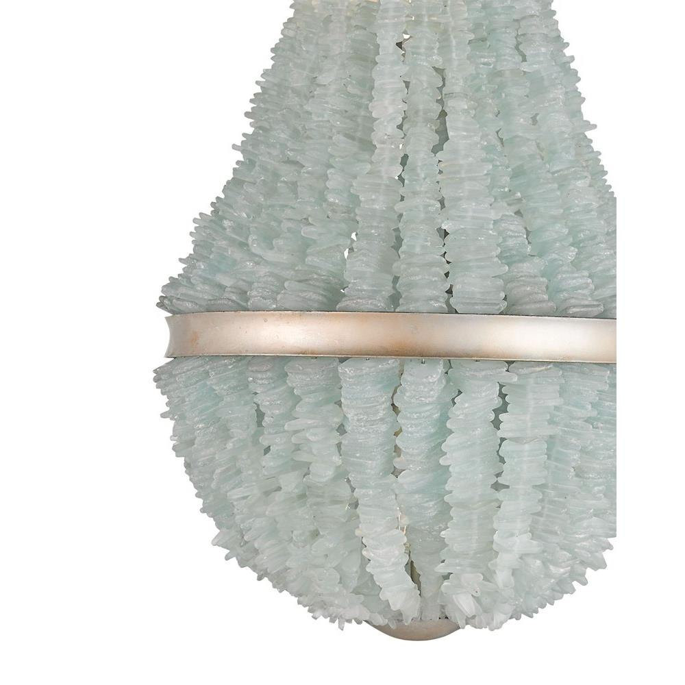 Organic materials inspired our Platea Chandelier encrusted with carefully chosen natural sea glass embellishments. The material is earthy while the classic silhouette and the contemporary silver leaf finish are formally sophisticated. The finish and the seaglass combined make this a gleaming luminary.