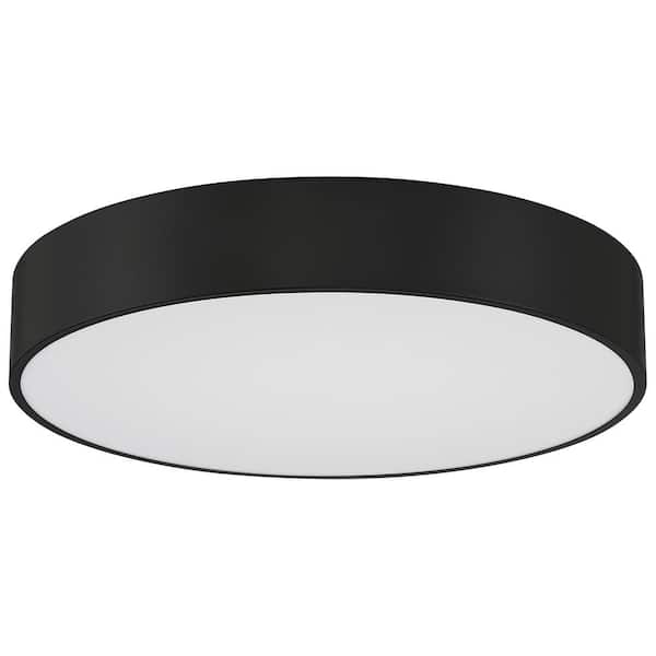 Como 13.75 in. 17-Watt Black Integrated LED Flush Mount with White Acrylic Shade