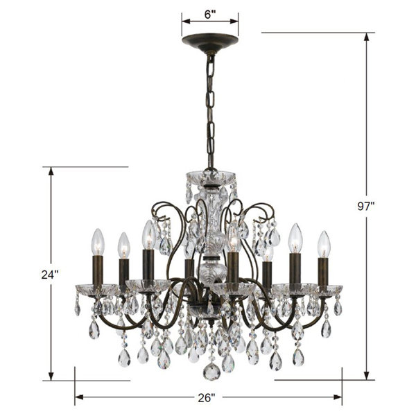 Graceful strands of faceted cut crystal adorn a classic frame creating a traditional fixture that never goes out of style. An exquisite addition to any home.