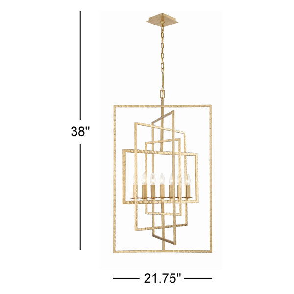 A conversation piece, the chandelier's geometric design, gives the fixture an architectural feel. Designed with hammered rectangle adjustable geometric rings, the chandelier can be rearranged to suit your needs.