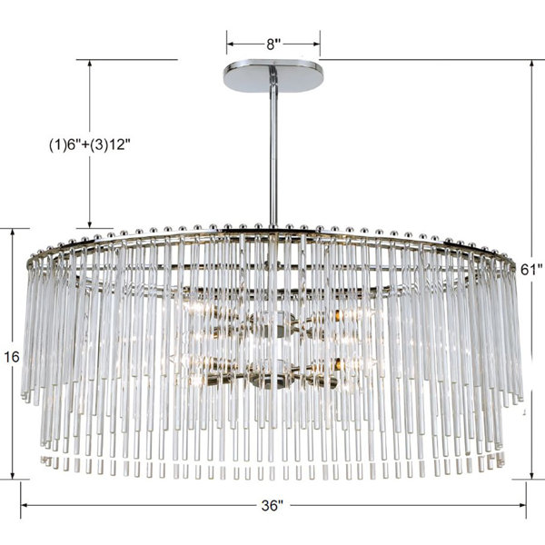 Grab glances from your guests as soon as they enter your entryway or dress up the dining room for an upcoming dinner party with this chic chandelier. Crafted from metal, its frame takes on a streamlined, circular silhouette finished in polished chrome and measures 17.25'' H x 36'' W x 16'' D. Two tiers inside offer eight lights overall, highlighted by cascading crystal accents to instantly up the drama of any ensemble.