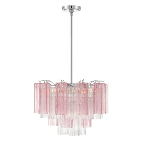 The captivating Wesham Lighting Collection is a modern-day interpretation of the iconic mid-century Tronchi chandelier. Inspired by its predecessor's sleek lines and geometric shapes, the Wesham features metal frame that exudes sophistication and style. Its unique design showcases transparent tiers of textured Tronchi glass tubes, forming a mesmerizing 5-point rounded star shape. Choose from a range of glass colors, including clear, amber, smoke, and white, or the stunning Autumn option, which features a captivating multicolor disposition of amber, clear, and smoke Tronchi glass. The Wesham Lighting Collection offers various sizes and finishes, allowing you to find the perfect fit for your space while adding a touch of timeless elegance.