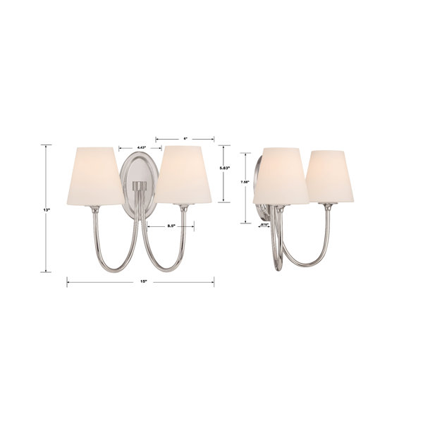 Add some classic elegance to your home with this 2-light wallchiere. Featuring a steel frame and frosted glass shades in a timeless white hue, it creates a warm, ambient glow in any space. The versatile design is perfect for damp locations, such as bathrooms or covered patios. With its standard bulb base, you can customize the brightness to your liking using dimmable bulbs (not included). Plus, the wallchiere is easy to install, so you can enjoy its graceful presence right away.