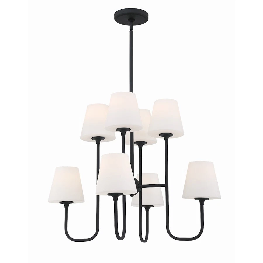 Crystorama Keenan 8 Light Chandelier, Black Forged/White - KEE-A3008-BF
