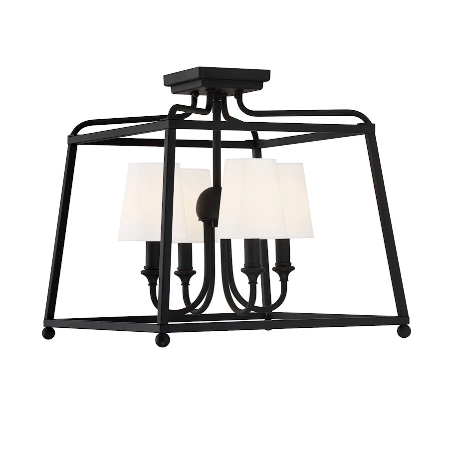 Crystorama Sylvan 4 Light Semi Flush Mount, Black Forged/Ivory - 2243-BF