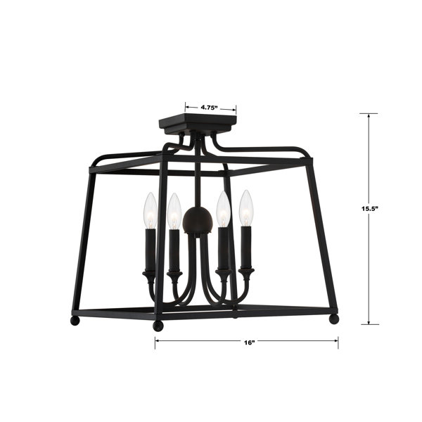 This lantern-inspired flush mount brings a modern flair to your space with its striking geometric design. The shapely steel frame, precisely balanced arms, and clean lines create a transitional feel. With four candelabra bulbs (not included) up to 60W, this fixture provides ample ambient lighting to your living room, entryway, or hallway. We love how the matte black finish gives it an industrial vibe that complements a variety of colors and aesthetics. Plus, it's dimmable, so you can set the right lighting mood throughout the day.