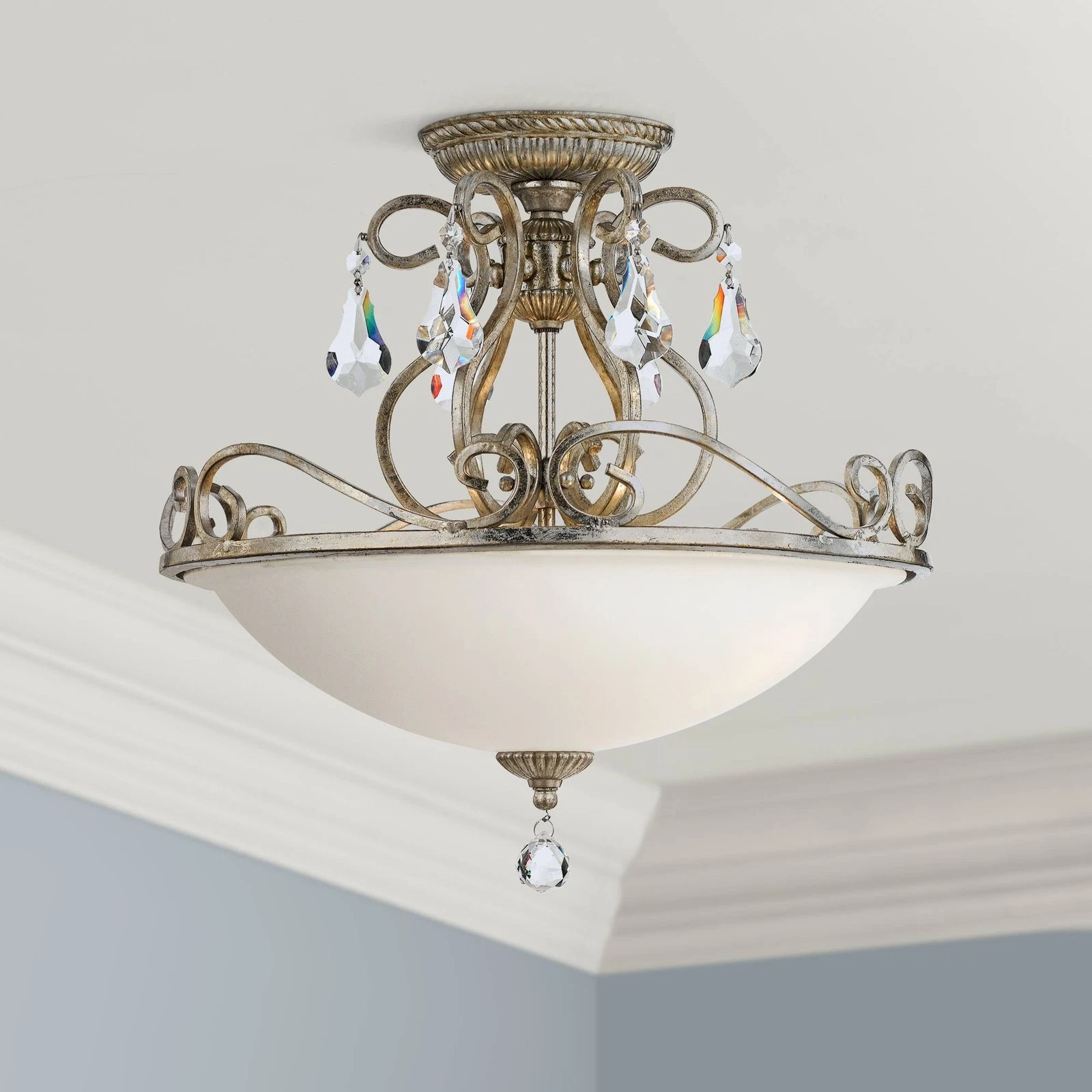Crystorama Ashton 16 1/2" Silver Scrolls and Crystal Ceiling Light