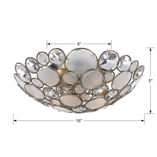 Inspired by nature, the translucent white capiz shells and hand-cut crystals will brighten any room. Each wrought iron frame is hand-painted in antique silver and fitted with capiz shells and faceted hand-cut jewels. The decorative elements are hand pinned inside the overlapping metal circles to give depth and dimension. This striking design creates an abundance of light in your bedroom, kitchen, dining room, or bathroom. This collection exemplifies nature's beauty.