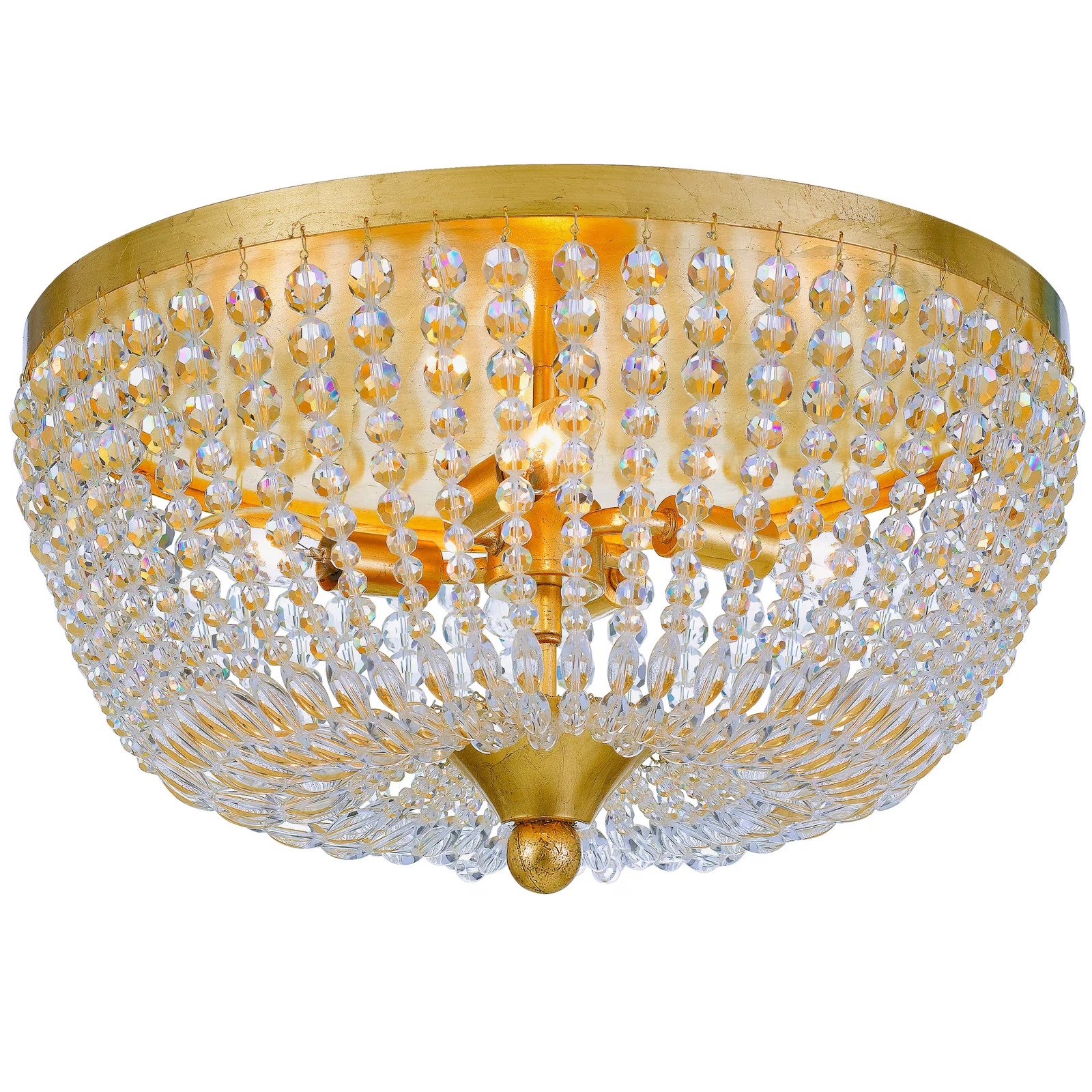 Rylee 4-Light 18" Ceiling Light in Antique Gold with Clear Glass Beads Crystals