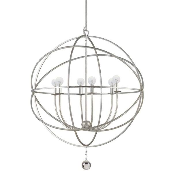 Luminous, lovely, and alluring, this chandelier brings life and expression to any space. The atom shaped frame lends a touch of flair to decor, and the hand-painted antique silver finish makes for a fabulous element of depth.