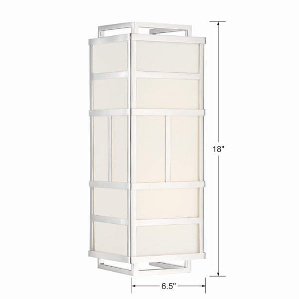This collection will light up your space with a modern flare. The classic drum shade on this wall mount is made of white textured silk surrounded by a steel geometric frame which is reminiscent of an art deco pattern