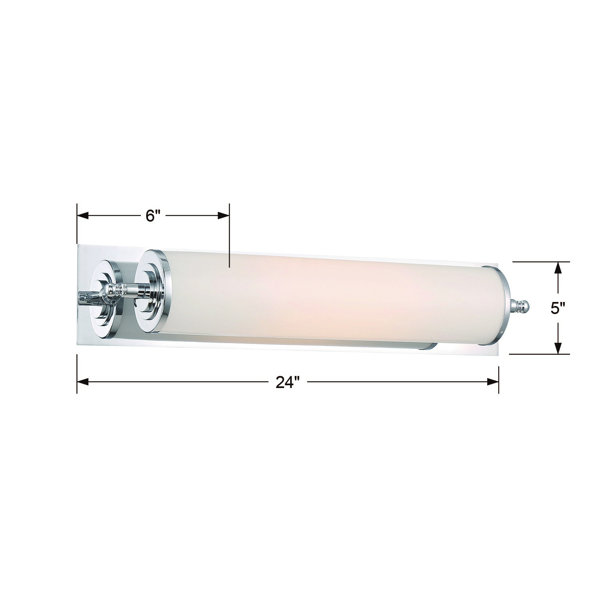 The striking yet simple design of the Forster collection features a sleek backplate and white glass cylinder. With the option to install horizontally or vertically, this vanity light looks great in any bathroom making the space functional and stylish.