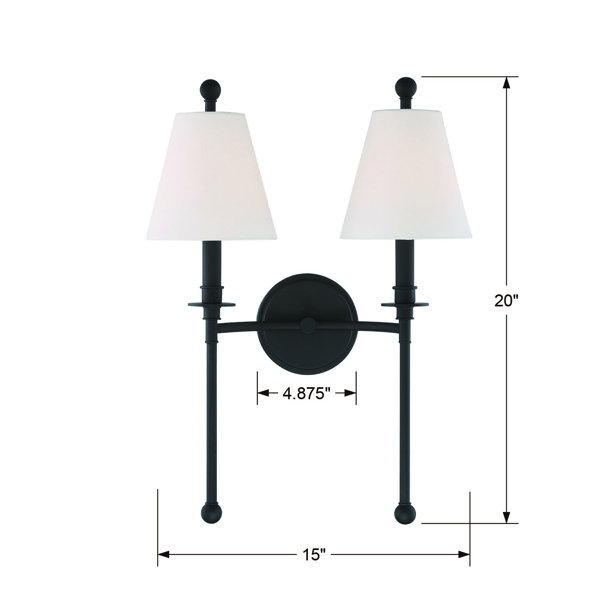 Bring classic style to your living room, dining room, or bedroom with this 2-light dimmable armed sconce. It’s metal and features a circular backplate, long-tail stems, and ball finials. The two Empire shades are made of white fabric. This sconce requires hardwiring installation; add a dimmer switch to set the right mood in your traditional farmhouse or cottage home.