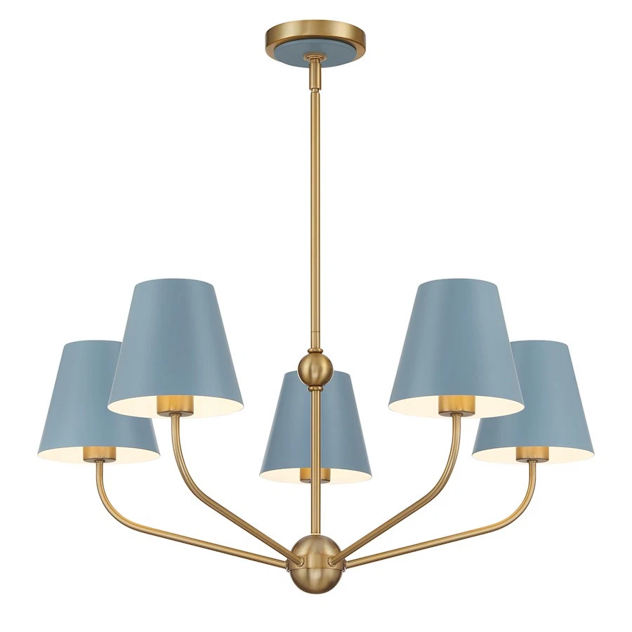 Crystorama Xavier 5Lt Chandelier, Vibrant Gold/Blue/Blue /White - XAV-B9315-VG-B L