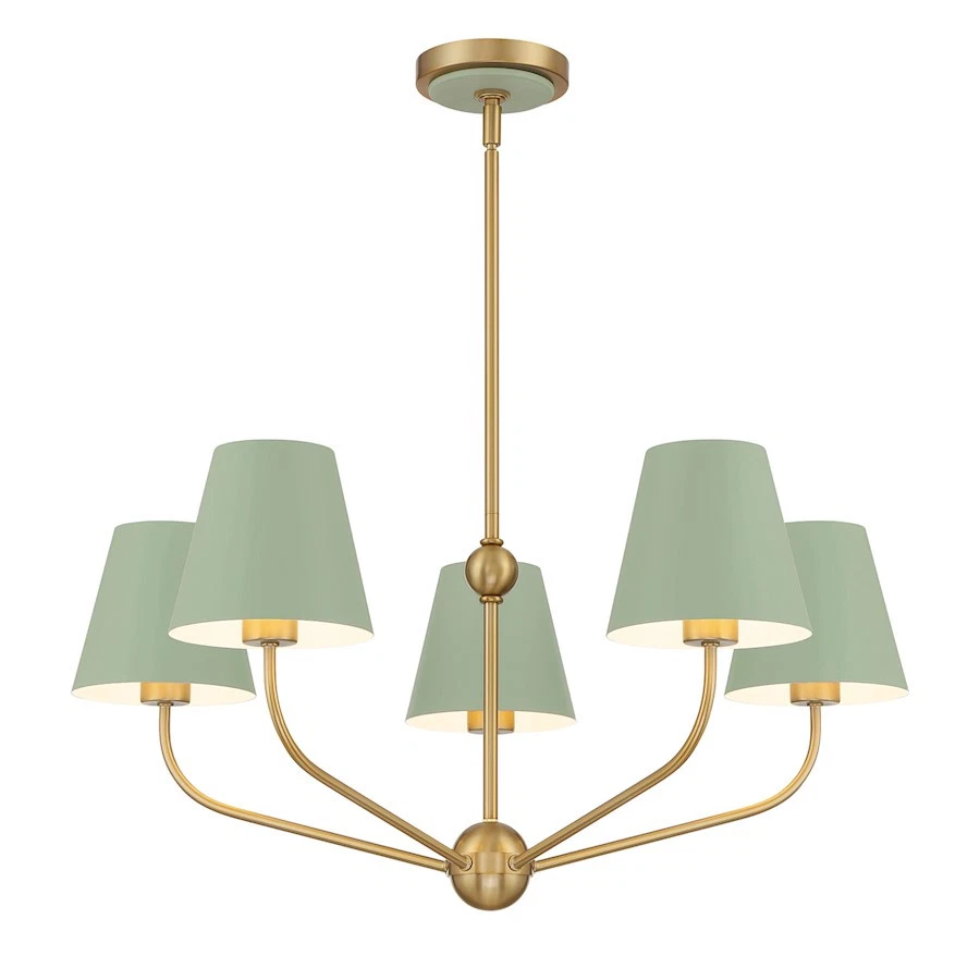 Crystorama Xavier 5Lt Chandelier, Vibrant Gold/Green/Whi te - XAV-B9315-VG-G R