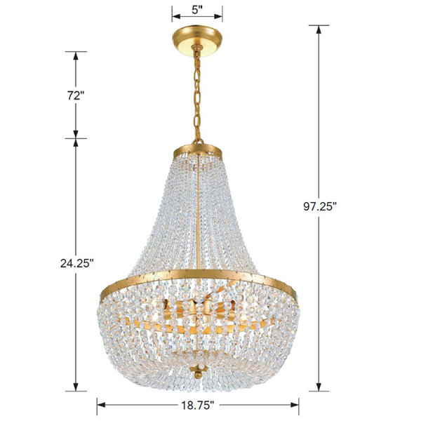 This 6-light empire chandelier adds some glam to your entryway or in the dining room. This fixture has a golden-hued, height-adjustable downrod that hangs from a sloped-ceiling compatible canopy. The circular metal frame holds six bulbs of up to 60W each (sold separately). These bulbs are surrounded by multiple cut crystal beads that enhance this chandelier's brightness factor. We love that this chandelier is compatible with dimmer switches, so you can lower the light for the perfect dinnertime or late-evening ambiance. Plus, it's rated for damp locations and safe to use in bathrooms.