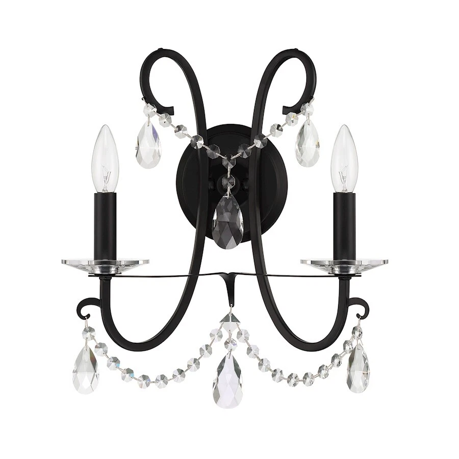 Crystorama Othello 2 Light Wall Mount, Matte Black - 6822-MK-CL-MWP