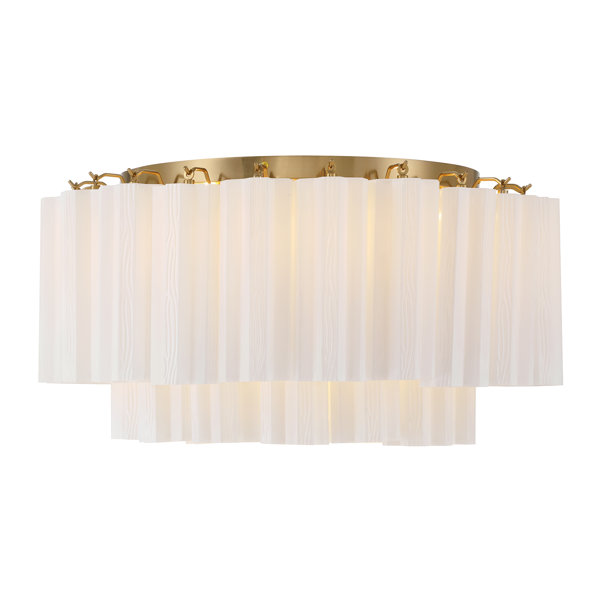 Shaurya 7 Light Flush Mount, Aged Brass/White
